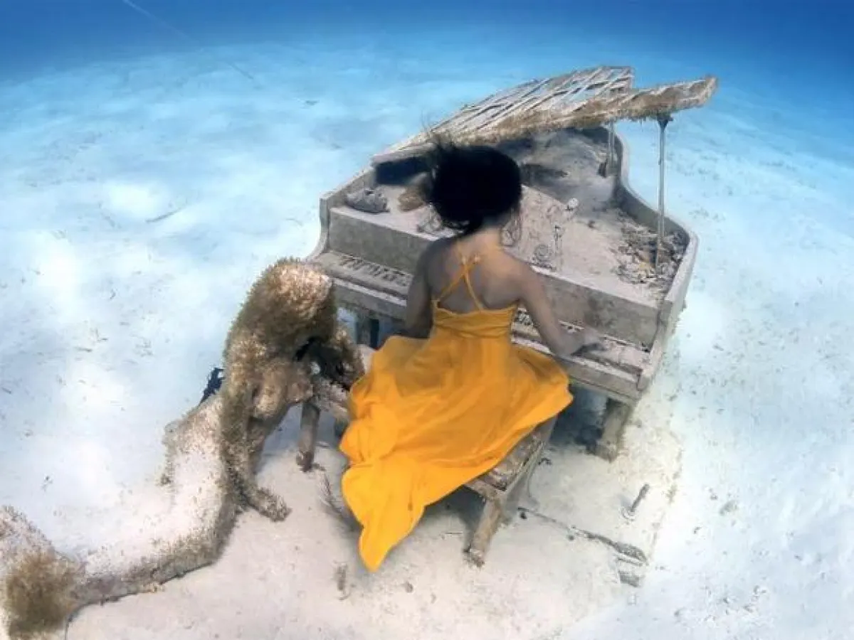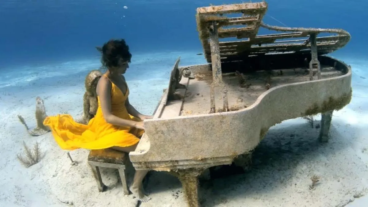 في حدث فني مذهل وأجواء غير تقليدية، تمكنت عازفة بيانو من الغوص تحت الماء وعزف الموسيقى على بيانو قديم في الأعماق.