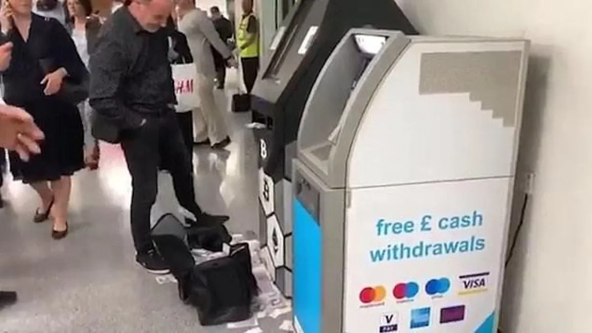 في واقعة غريبة ومشهد مفاجئ، أخذ صراف آلي في لندن يقذف بالنقود الورقية من داخله الى الشارع أمام المارة وبشكل عشوائي. وظل الصراف يقذف بالنقود من فئة عشرين جنيه استرليني الى الشارع لفترة، فيما سارعت السلطات إلى وضع حقيبة أمام الصراف من أجل التقاط النقود.