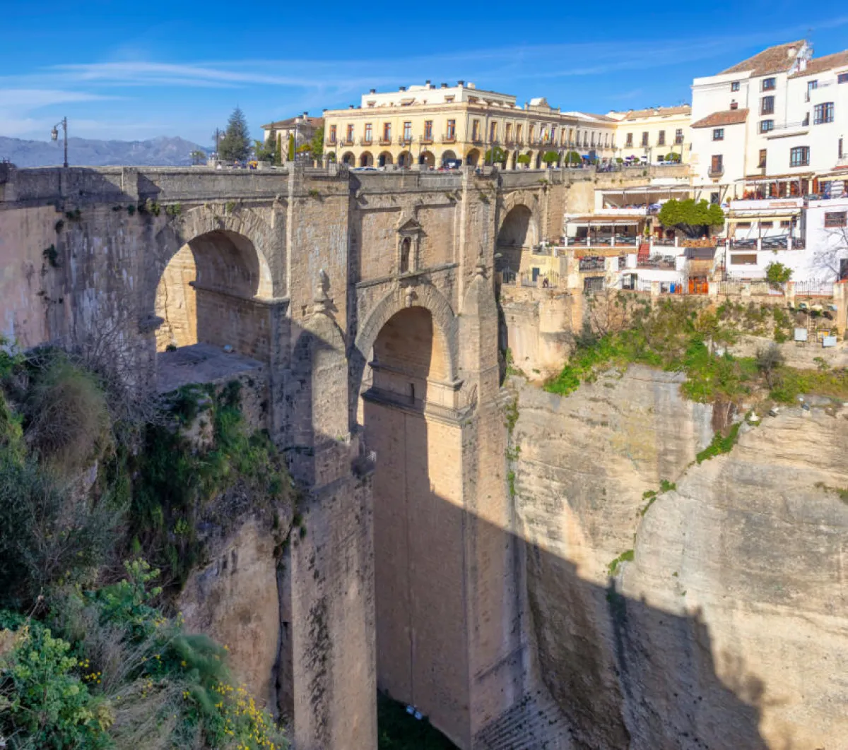 استغرقت عمليَّة بناء هذا الجسر الحجري نحو 42 سنة، ابتداءً من سنة 1788، ليرتفع على طول 70 مترًا بعد ذلك. وثمة غرفة تقبع أعلى القوس المركزي في الجسر، كانت استخدمت لأغراض عدة، بما في ذلك السجن.