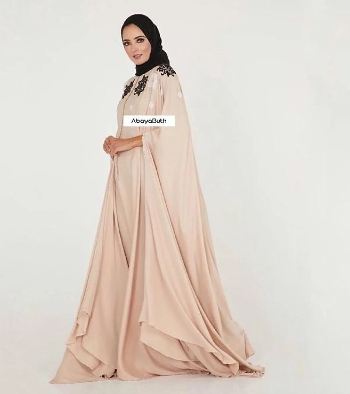 إذا كنتِ تبحثين عن اطلالة تشبه الفاشينيستات، فهذا الموديل من عبايه بوث Abaya Buth، سوف يكون وافيًا بالغرض، ليمنحكِ اطلالة ملكية فخمة، مع هذه الدرجة بألوان الروز الفاتح جدًّا، نسقيها مع حجاب باللون الأبيض، أو أكملي اللوك المحايد بلون العباية نفسه.