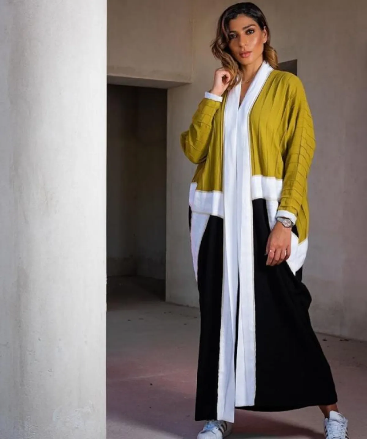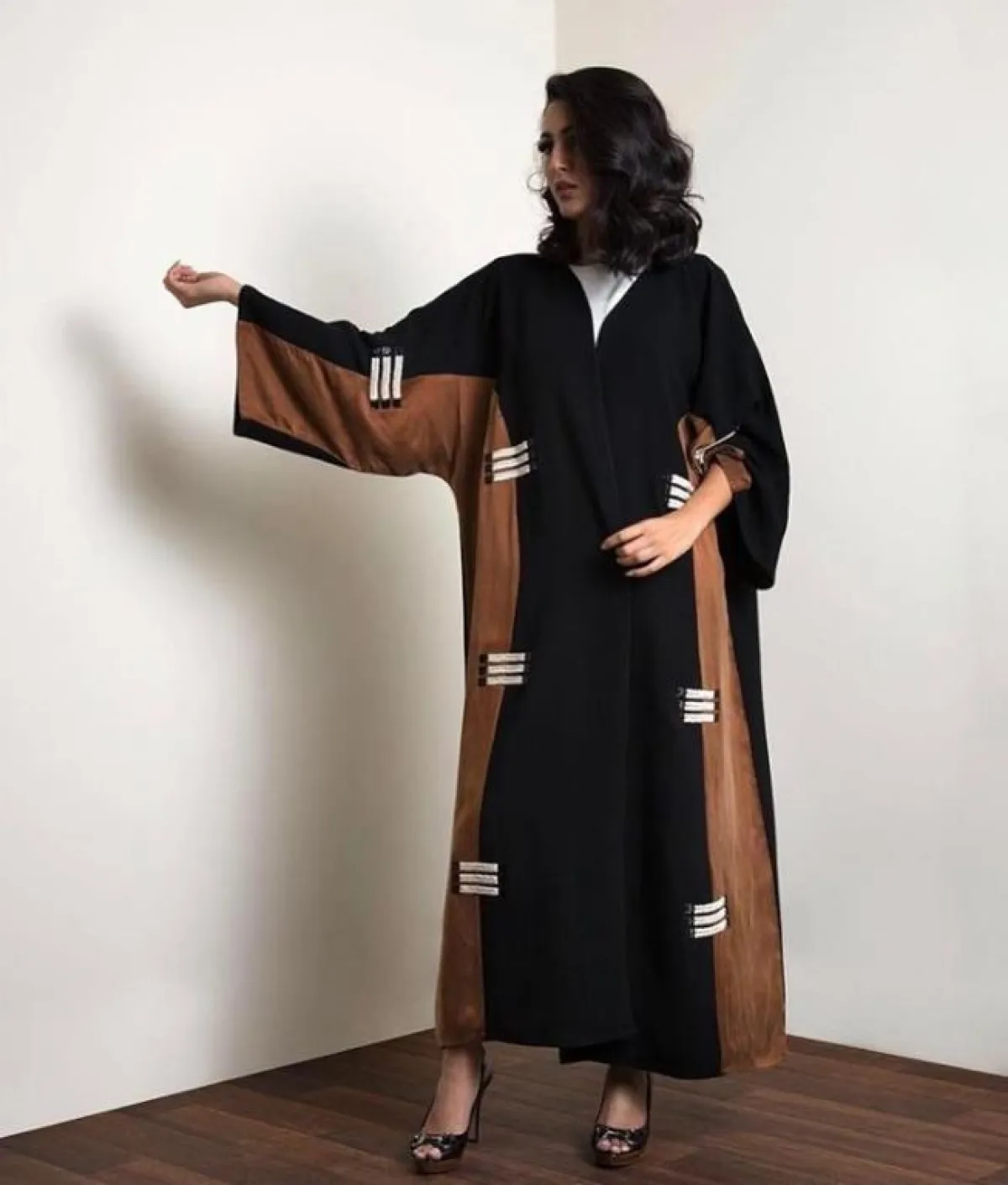 إذا كنتِ تميلين إلى ارتداء الجلابيات الملونة، لكنكِ لا تملكين الجرأة باعتمادها، فلِمَ لا تختارين عباية سوداء مثلًا، مع لمسات من الألوان البيج الفاتحة، كهذا الموديل من cut Abaya كات عبايه، نسقيها مع حجاب أبيض أو نود، مناسبة للعمل، أو مشوار عادي في المساء.