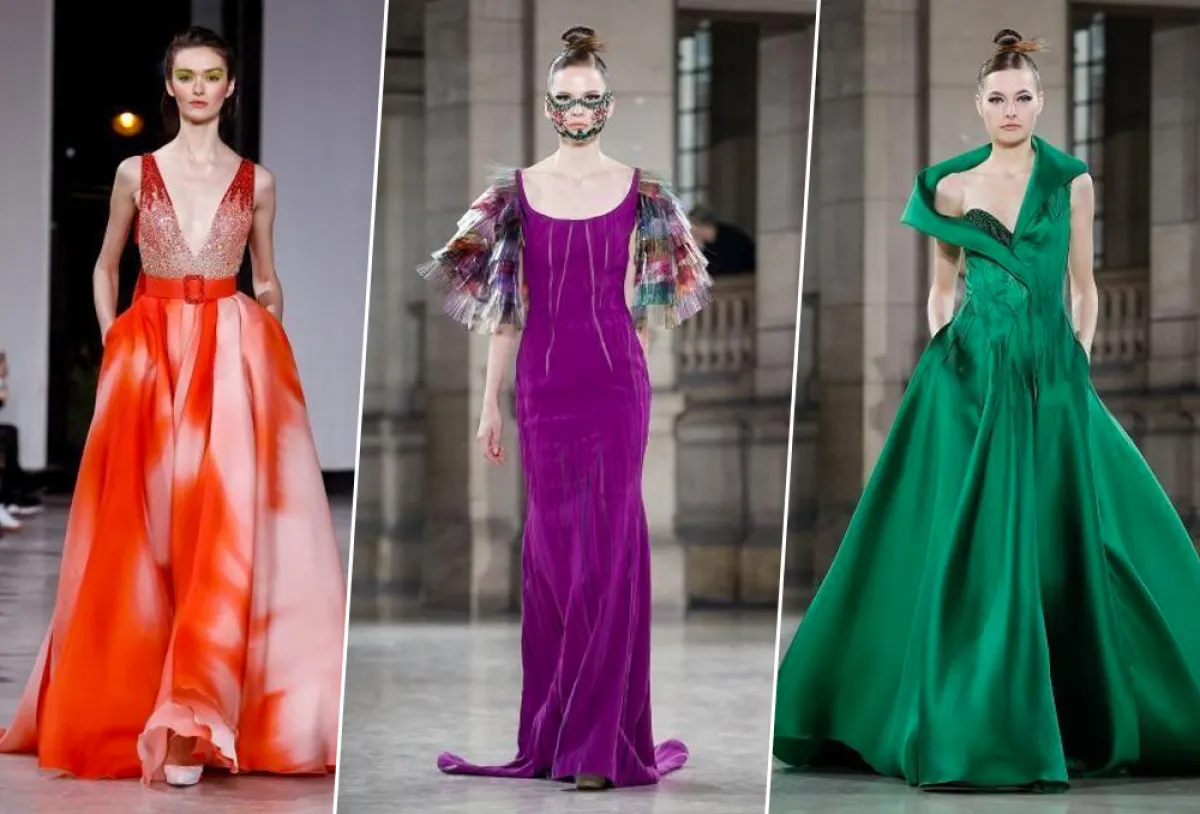 كذلك برزت ألوان أخرى حيوية في عرض أزياء طوني ورد Tony Ward، مثل الفستان الأرجواني والفستان الأخضر المنفوش.
