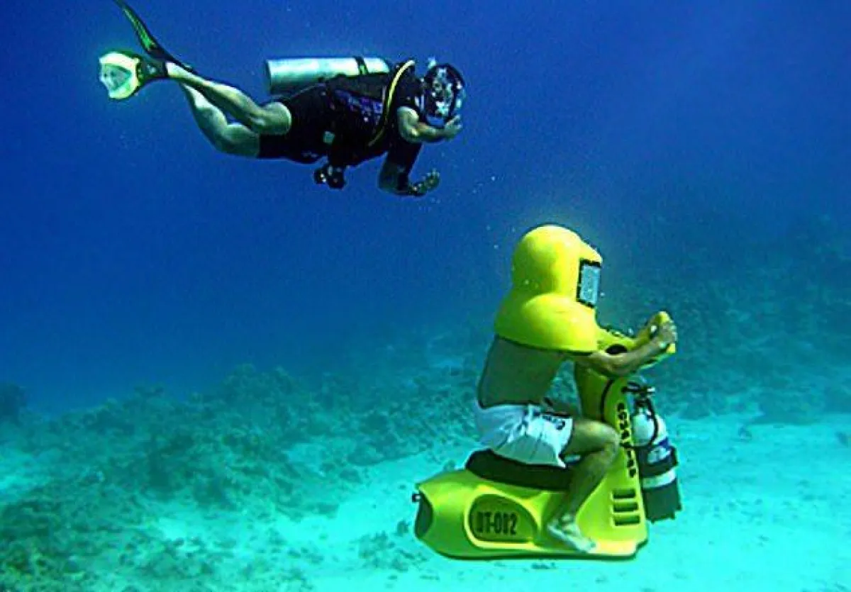 أطلقت شركة Silvercrest Submarines البريطانية، مشروع “SubSea Scooter- دراجة نارية” . وهو عبارة عن “دراجة نارية” تعمل بواسطة محرك كهربائي، يتيح للجمهور القيادة في قاع البحار لمدة ساعتين ونصف الساعة في الرحلة الواحدة، والتي تبلغ تكلفتها 17 ألف جنيه إسترليني.