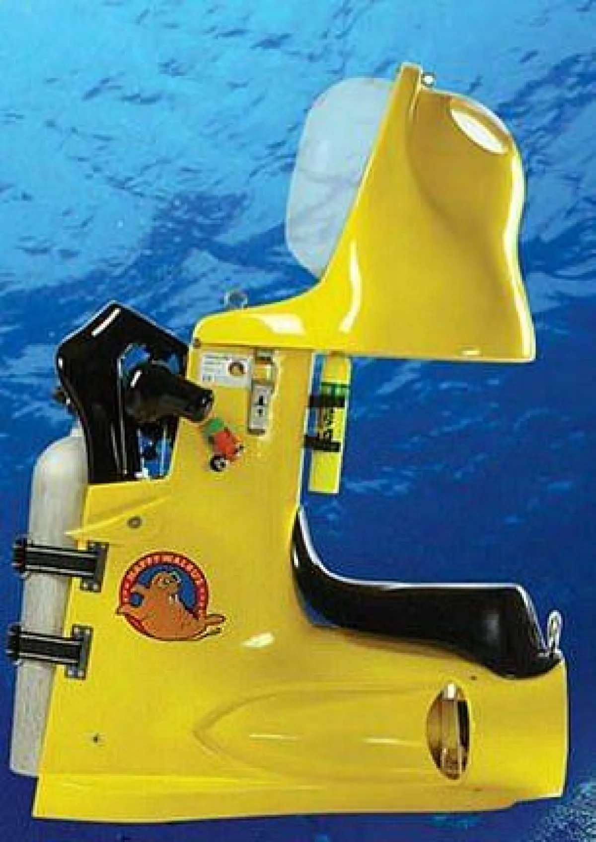 وتبدأ الرحلة على الدراجة مع الخوذة الهوائية، والتي يتم تزويدها باستمرار بالهواء من خزانات الغوص التي تدوم سبعين دقيقة، وترتبط بالجسم الأمامي للدراجة، وتتميز الخوذة بزجاج مسطح مقاوم للضباب، خالٍ من التشوهات بنسبة 99٪، ما يوفر رؤية واضحة تحت الماء.