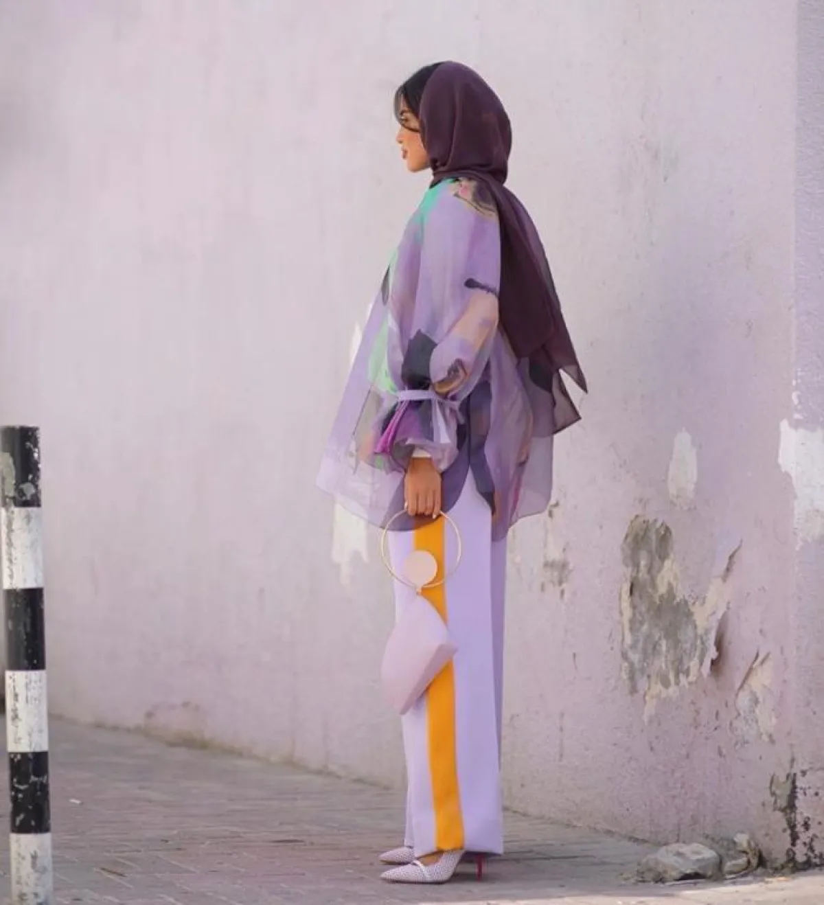 هذا اللون من الحجاب، المميز به أنه مناسب لكل ألوان البشرة، من الممكن أن تنسقيه مع البدلة بالألوان الفاقعة، أو الاطلالات الحيادية باللون الأبيض، كهذا اللوك من سهر فؤاد، أو نسقيه مع الفساتين الصيفية بالألوان الخردلية، لاطلالة مميزة على الشاطىء.
