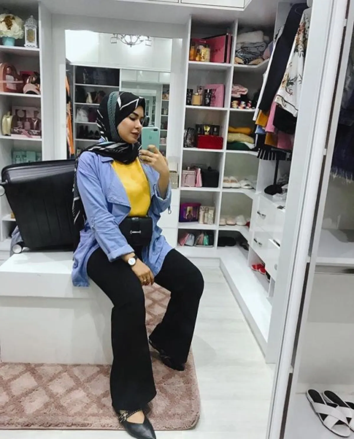 الحجاب التركي والذي عادةً ما يكون من الساتان المخملي، مناسب لكِ إذا كنتِ ترغبين في الحصول على اطلالة سيمي كاجوال، كاطلالة مروة حسن بالحجاب الملون مع الجاكيت الجينز، والبنطلون عالي الخصر.