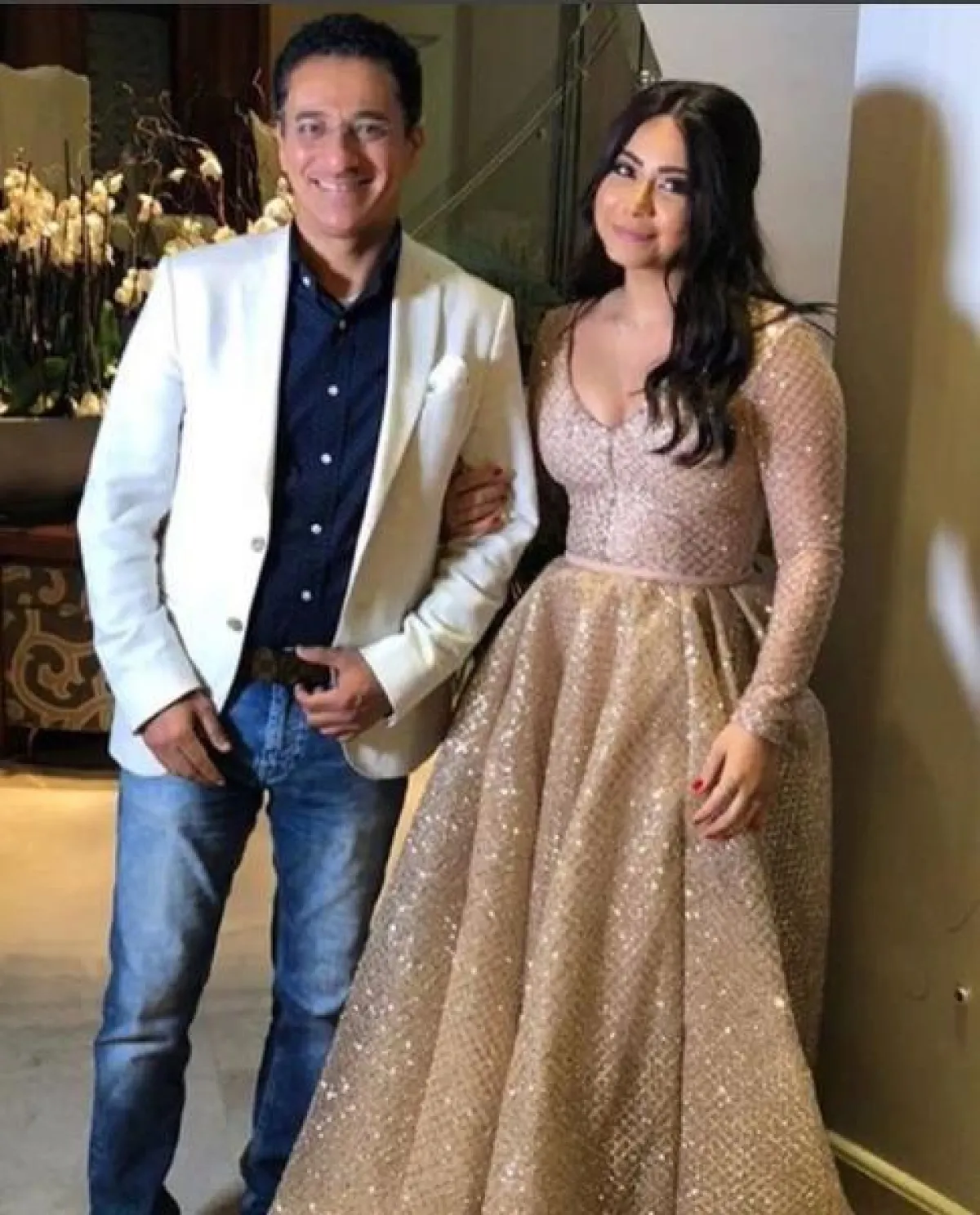 وأطلت شيرين بفستان مميز من توقيع المصمم الكويتي يوسف الجسمي باللون الذهبي البراق، أظهر جمالها وأنوثتها بشكل لافت.