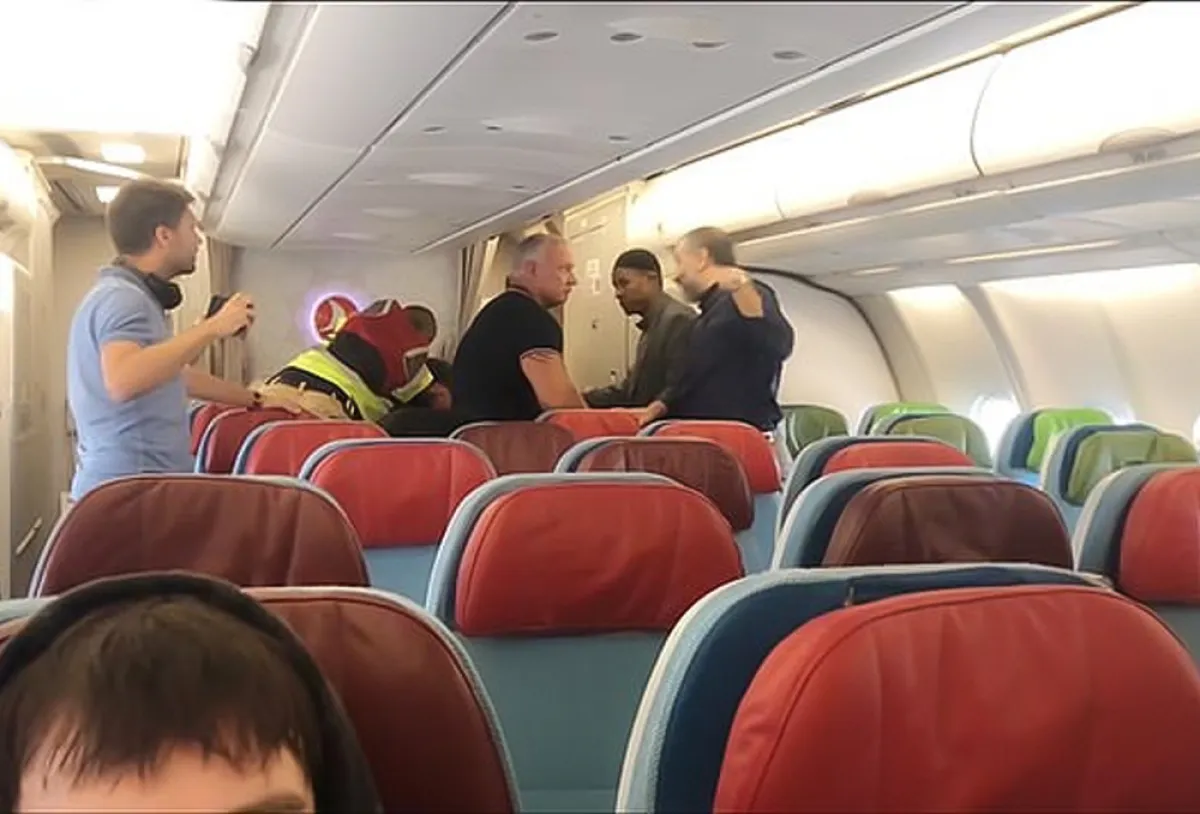 وخلال الاحتجاجات التي حدثت لمنع ترحيل الرجل الصومالي المتهم بـ«اغتصاب جماعي»، تم التقاط مقطع فيديو مصور من ركاب آخرين على متن الطائرة. حيث كانت الأصوات تتعالى بحالة من الفوضى، مطالبة بإنزاله وعدم ترحيله. ويظهر أيضاً عناصر فريق «مكتب الداخلية» الذين كانوا يرافقون أحمد، وهم ينهون المهمة وينزلونه عن متن الطائرة بالفعل.