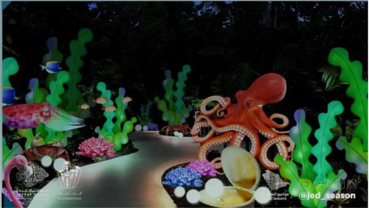 حيث يمتزج الفن والتكنولوجيا والابتكار. مهرجان الضوء في الهواء الطلق مع قطع فنية مميزة ومخصصة تحدد عالم البحر الأحمر تحت الماء. مع تحول منطقة الحمراء إلى عالم سحري آخر، سترى مدينة جدة تتوهج وتضيء أمسياتها.