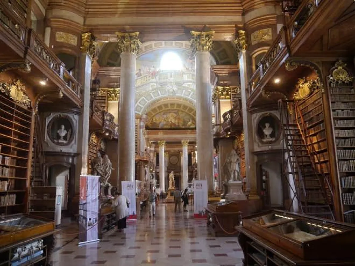 يتفق الجميع على أن المكتبة الوطنية النمساوية في فيينا، تعتبر إحدى أجمل المكتبات في العالم على الإطلاق، ومن دون منازع، ويعود افتتاحها إلى القرن السابع عشر ميلادي، ومن الطبيعي أن تكون بهذا السحر الفاتن؛ كونها فتحت في البداية كمكتبة ملكية، بلمسة من الذوق الباروكي، وتصميم المكتبة التقليدي، والمنحوتات الرخامية الكبيرة، وتكتظ خزائن الكتب بالأعمدة الأيونية والسقوف الجدارية والأرضيات الرخامية.
