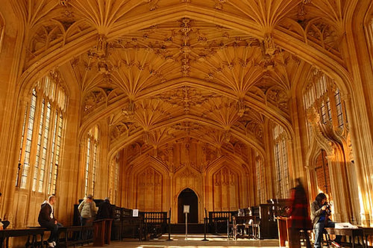 تتواجد مكتبة بودليان، المكتبة الأولى في المملكة المتحدة، في منطقة إستراتيجية، وتصنف ضمن قائمة أقدم المكتبات في أوروبا؛ حيث استفادت على مدار 400 عام، من مختلف الكتب التي تطبع في المملكة المتحدة، وتحتضن هذه المكتبة بناية ضخمة مذهلة، وتنام على ثروة معرفية تقدر بنحو 12 مليون كتاب، موزعة عبر المباني وكذا الممرات السحرية تحت الأرض والمنتشرة حول المدينة، ويضاف إليها مدرسة Divinity School التي يعود تاريخها إلى القرن الخامس عشر، وهي جزء من مجمع المكتبة، معززة بسقف مقبب ينتشر على الرواق الطويل، يصعب وصف جماله الباهر؛ علماً بأن أول أفلام هاري بوتر تم تصويره في هذا المبنى.
