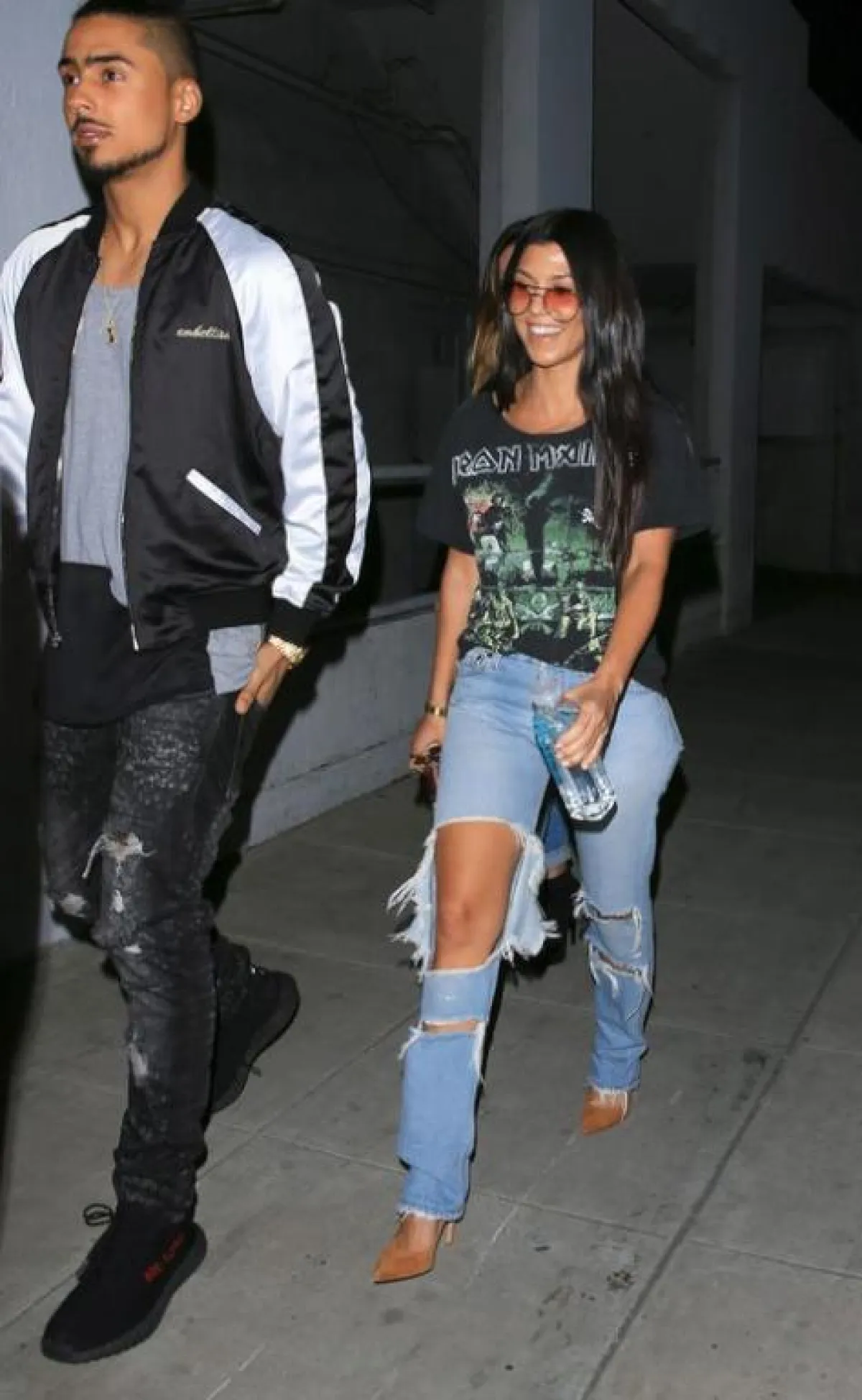 أطلّت كورتني كارداشيان بصيحة الجينز الممزّق مع حذاء مول بكعب عالٍ و تيشيرت كاجوال من اللون الأسود. زيّنت كورتني اطلالتها بنظارات شمسية ملوّنة .