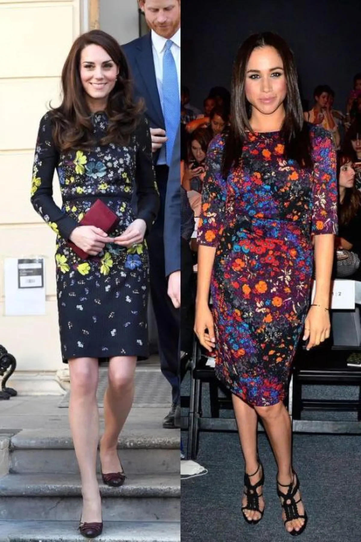 اقتنت الدوقتان ميغان ماركل و كيت ميدلتون أزياء من التصميم نفسه،  مؤلفة من فستان ميدي أسود مورّد، مع حذاء بكعب عالٍ. وقد لاحظنا اعتماد ميغان وكايت لإطلالات متشابهة لأكثر من مرّة.