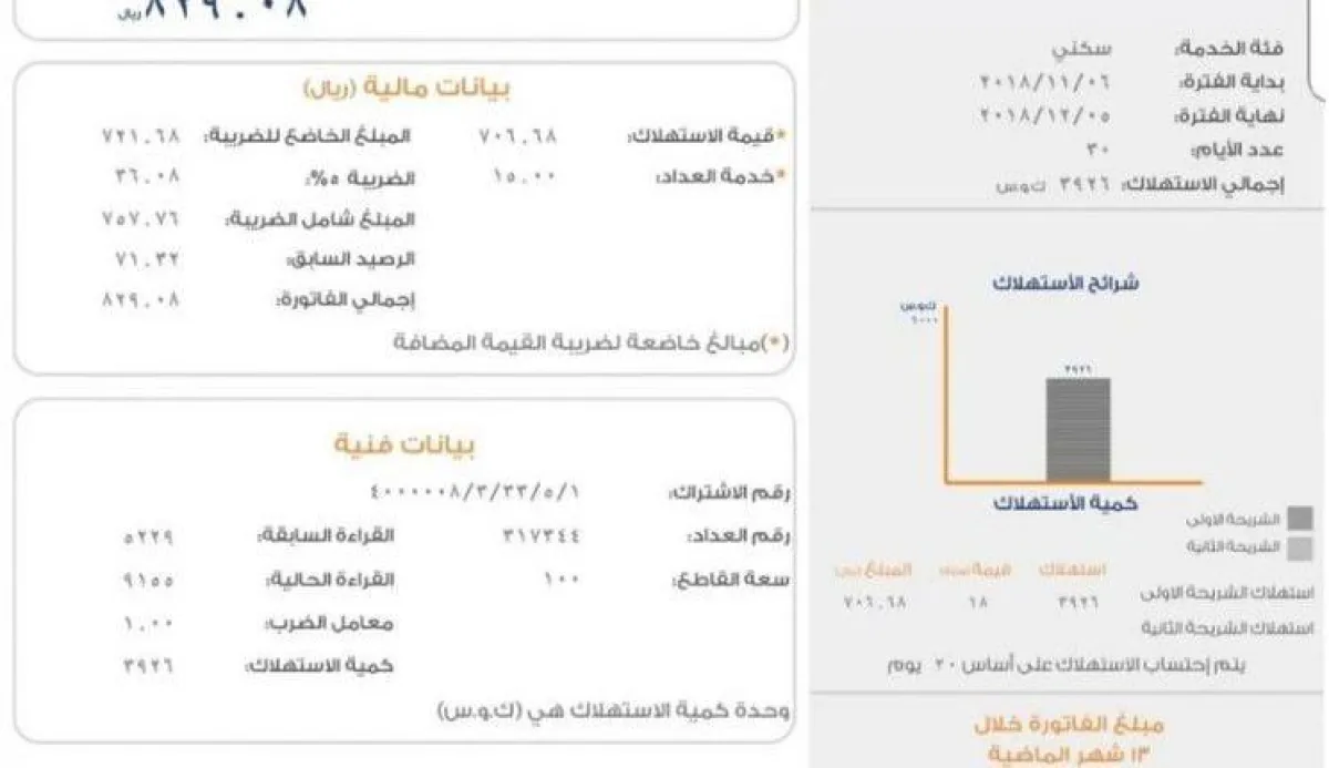 وأكدت السعودية للكهرباء أنها راعت في التصميم الجديد لفاتورة الخدمة الكهربائية إبراز البيانات والأرقام التي تهم المشترك، خاصة ما يتعلق بـكمية الاستهلاك التي تُمثل الفارق بين «القراءة الحالية» و «القراءة السابقة» لعداد المشترك خلال دورة قراءة الفاتورة، ويترتب عليها القيمة المطلوب سدادها.