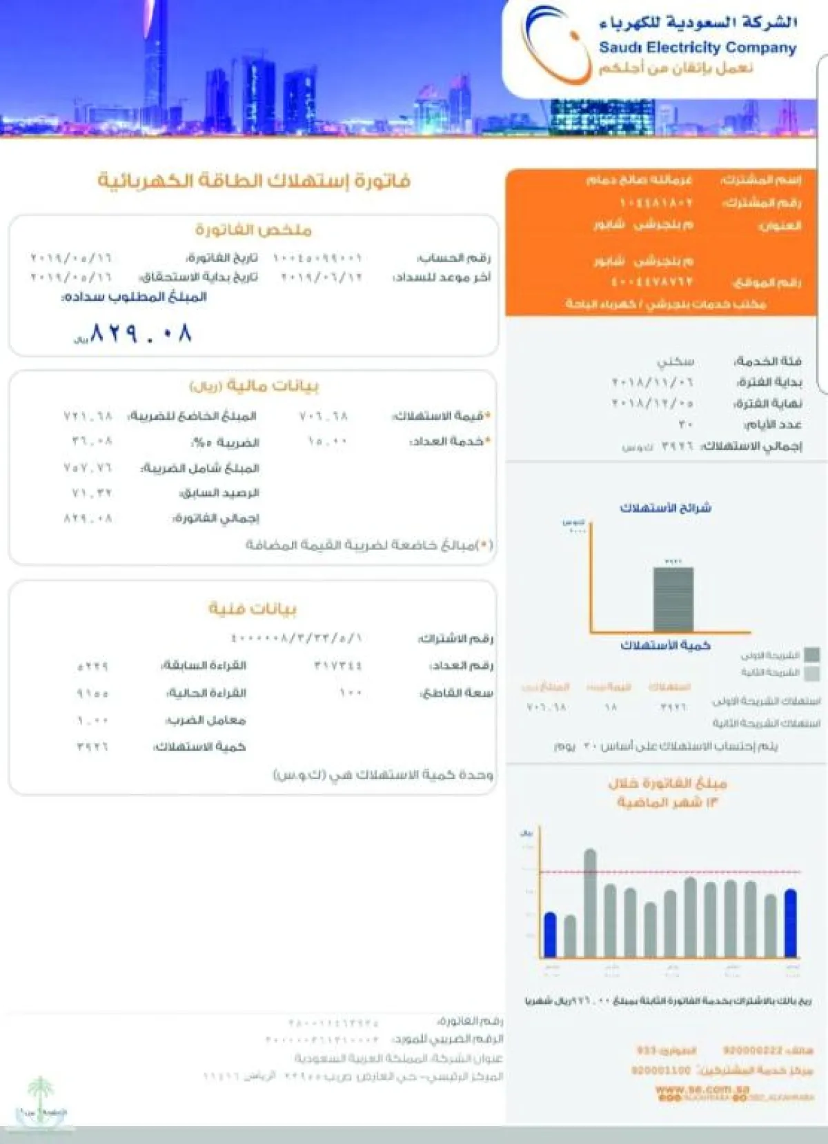 كما حرصت الشركة في التصميم الجديد للفاتورة على تضمين خلية بها رسمان بيانيان، الأول خاص بشرائح الاستهلاك، ويوضح تقسيم «كمية الاستهلاك» على شرائح الاستهلاك لكل مشترك، أما الثاني فيوضح الحالة التاريخية للفواتير الخاصة بالمشترك خلال 13 شهراً، والشهر الحالي ونظيره من العام السابق.
