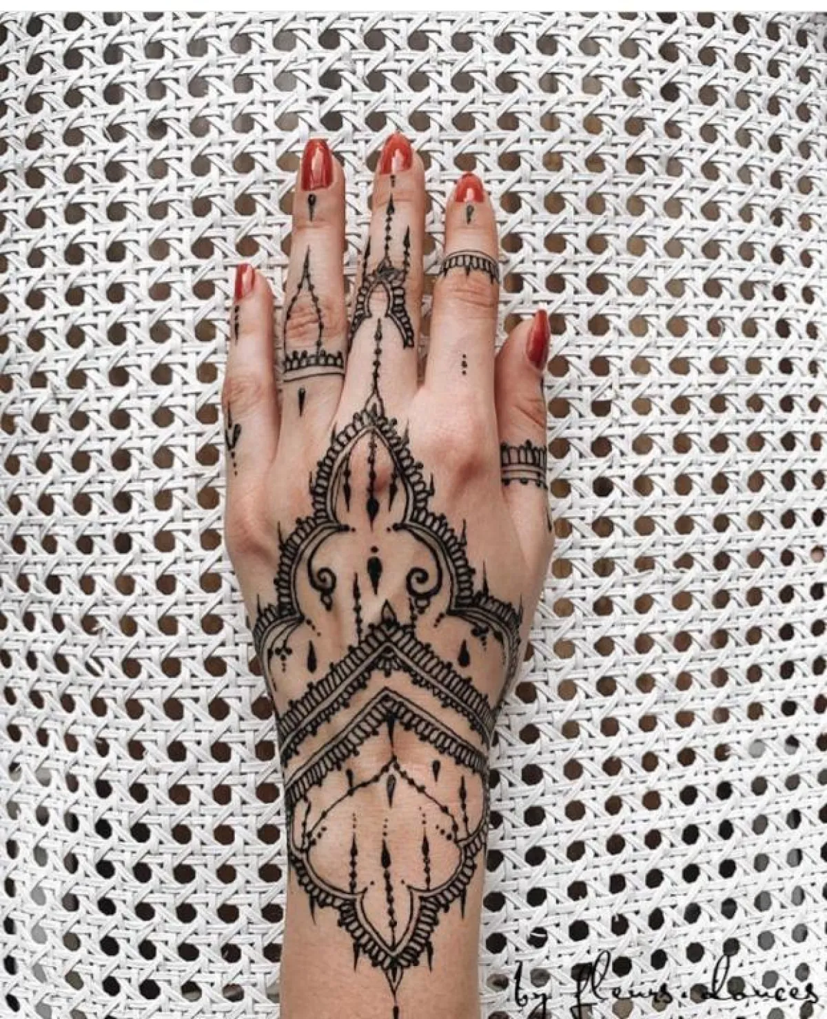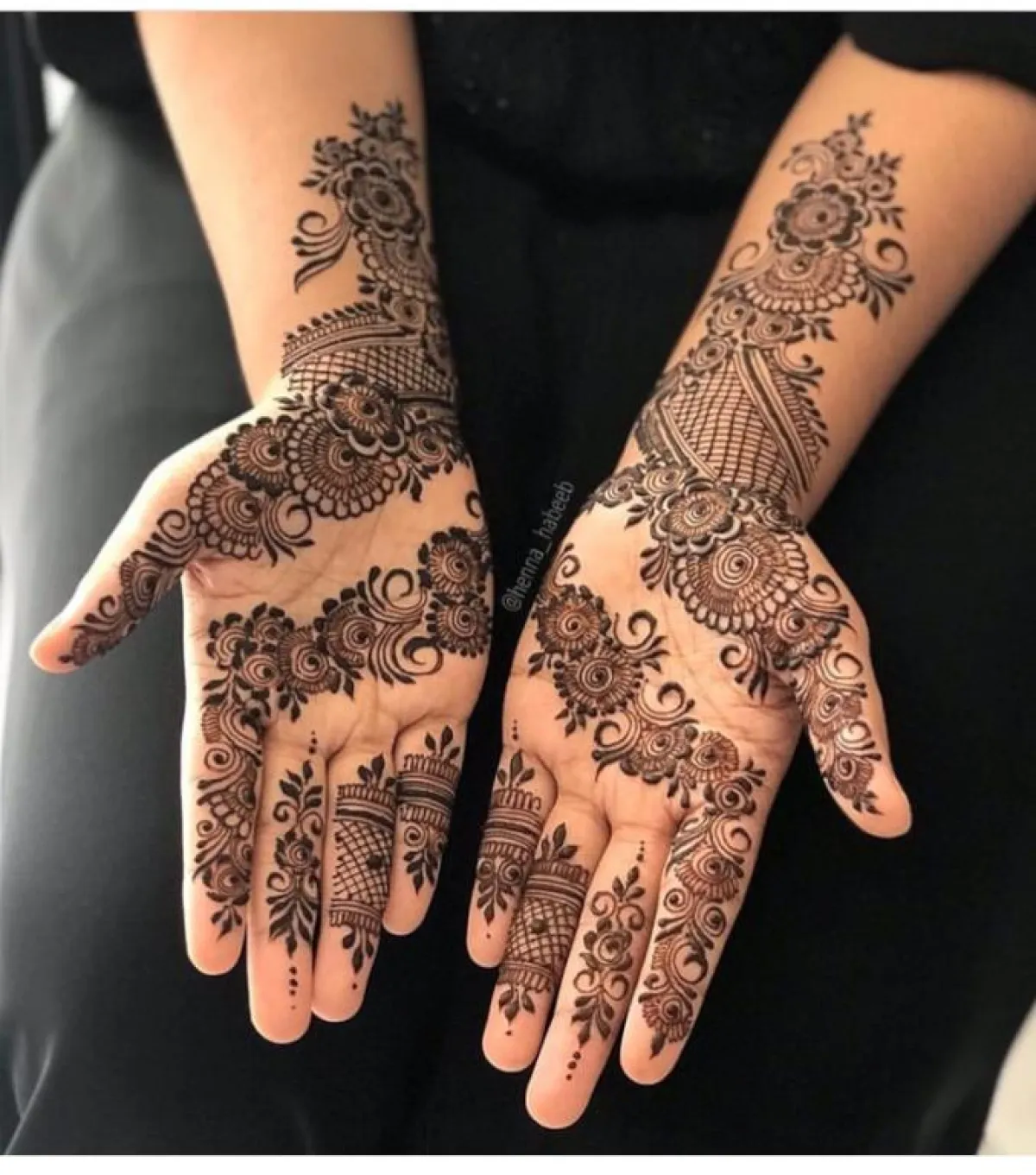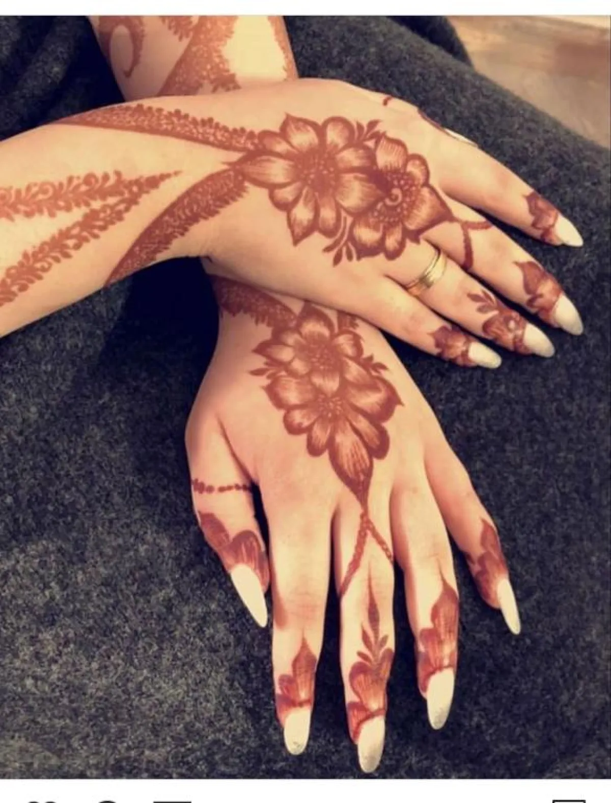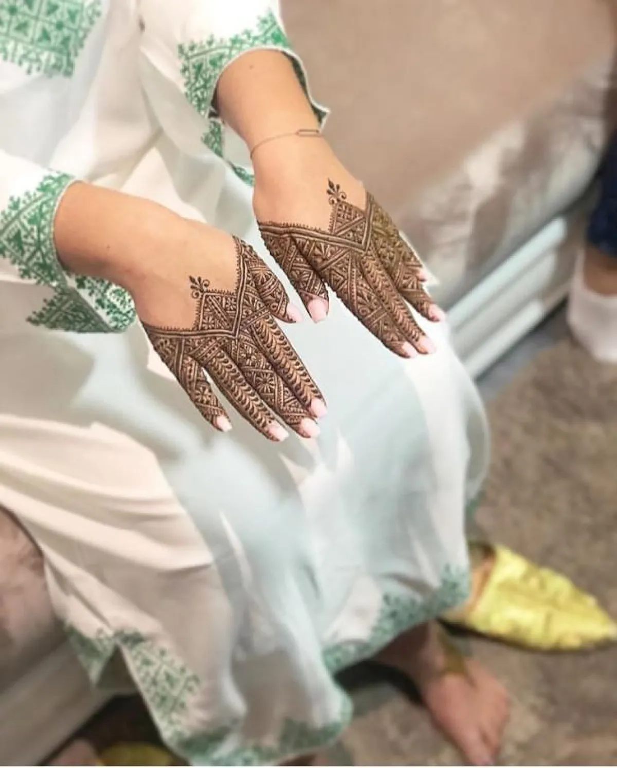 من أشهر الرسومات التي لا تتخلى عنها الصبايا، وهي التي تعتمد على الطابع العربي الفلكلوري، باختلاف أشكالها بالطبع، لكن تبقى هويتها واحدة. والتي تكون على اليد كلها، من الكف إلى المعصم، وتتفرع على الأصابع بشكل انسيابي، وتلف حول معصم اليد بطريقة مميزة.