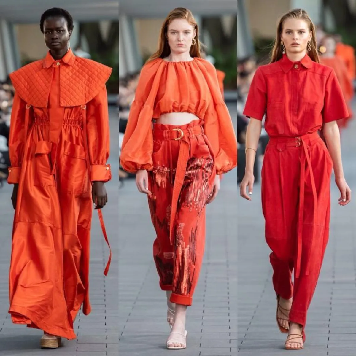 تصدرت الألوان الدافئة مثل البرتقالي والأحمر و البني، الممشى خلال عروض "ريزورت 2020". قدم دار أزياء "أوسكار دي لارينتا" Oscar de la renta الأحمر التوتي، والأصفر المستوحى من أشعة الشمس، وعلى النقيض ظهر البيج ضمن تشكيلة الدار كخيار صيفي ناعم، لا سيّما وأنّ أغلب التصميمات جاءت مزينة بألوان ناعمة أضافت حيوية للّون الأساسي مثل البيج.