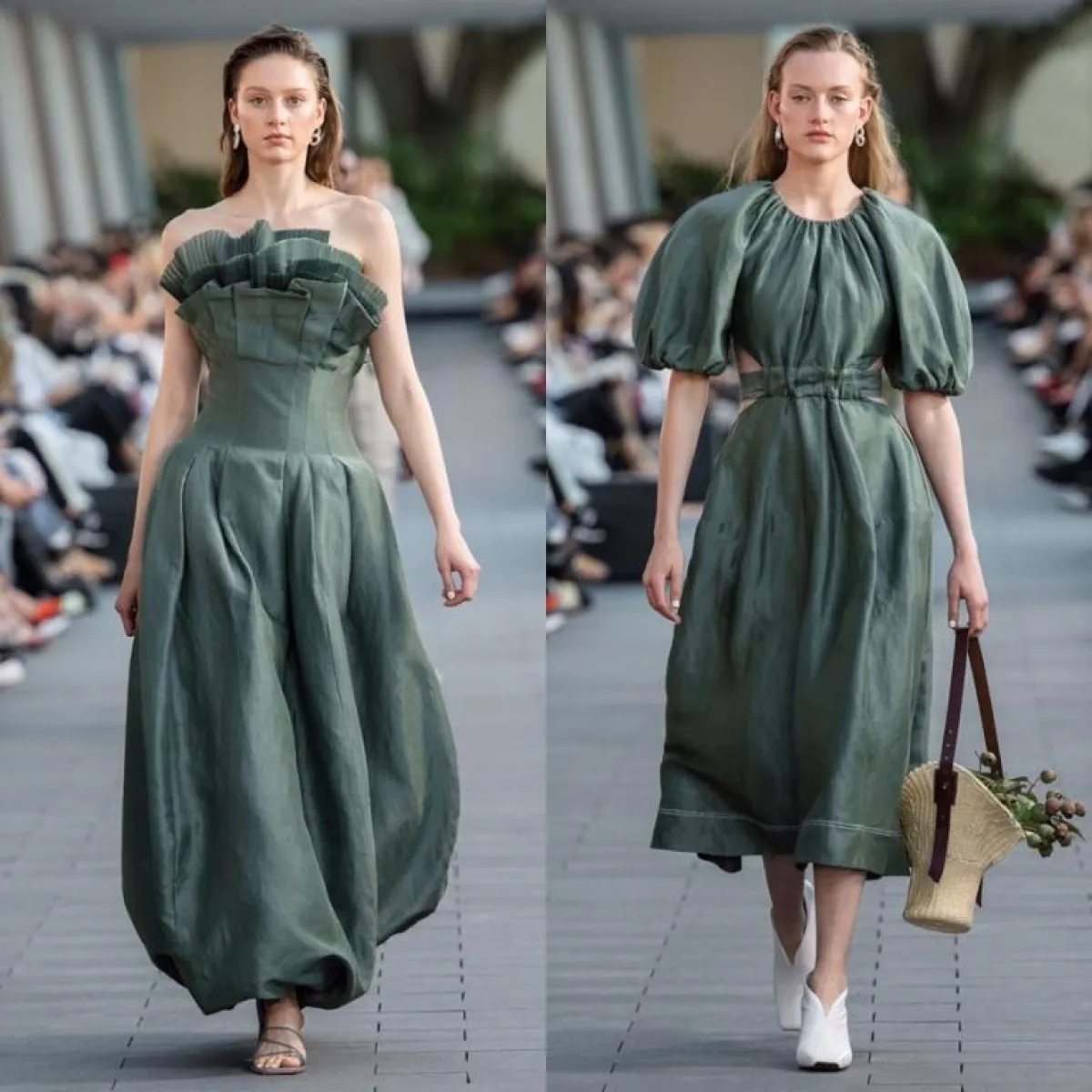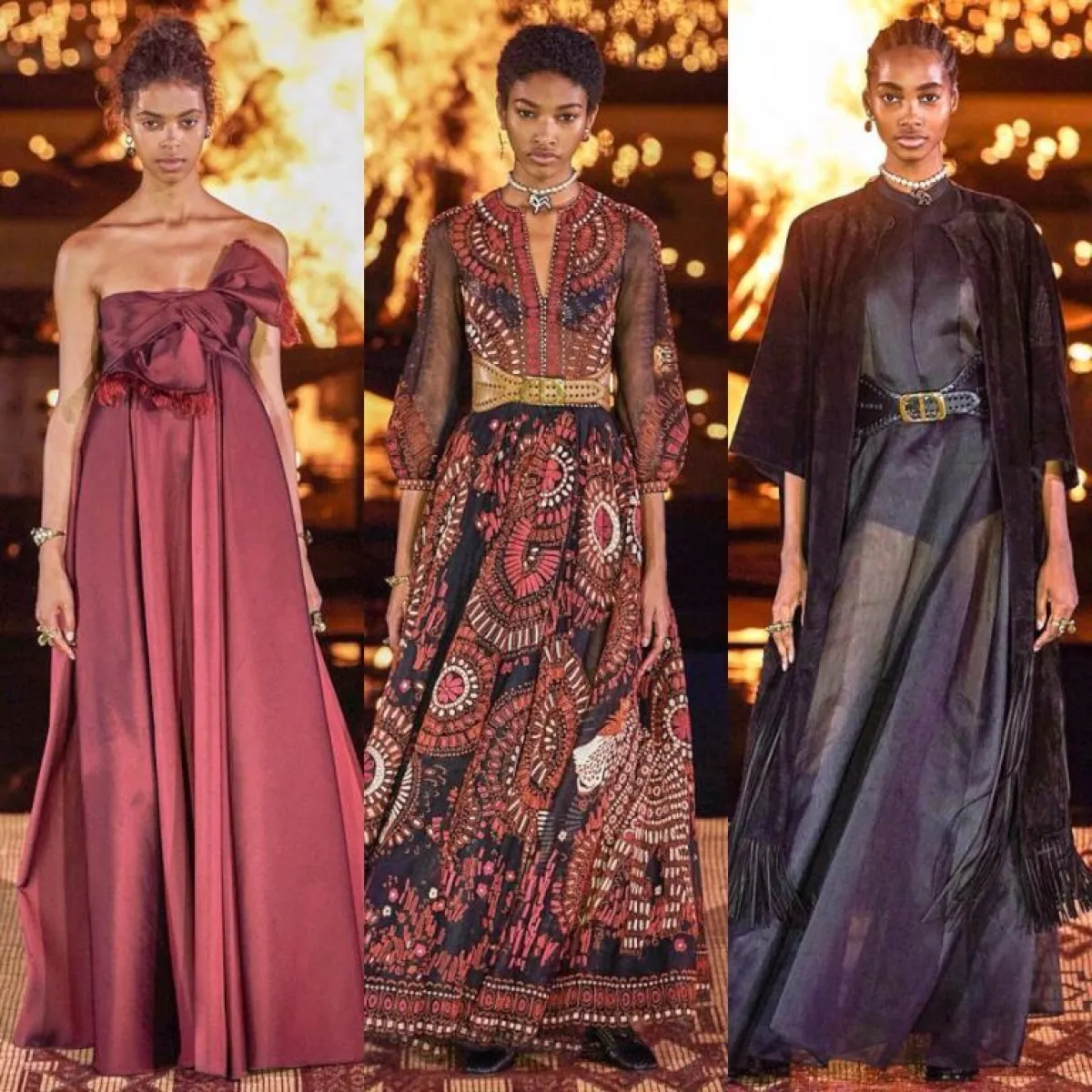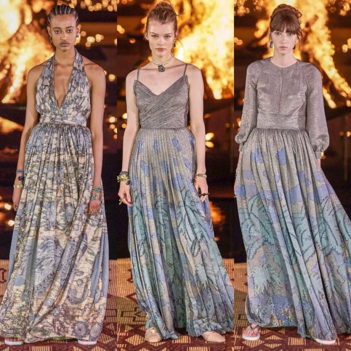 عادةً ما تتسم عروض الريزورت بالأزياء الصباحية المبهجة، إلا أنها قدمت أيضًا بعض الخيارات المسائية الأنيقة، من خلال فساتين ماكسي من الشيفون بألوان تناسب المساء، مثل الأسود والجملي والتوتي، كذلك ظهر حزام الخصر ليعزز أناقة القطع المسائية.