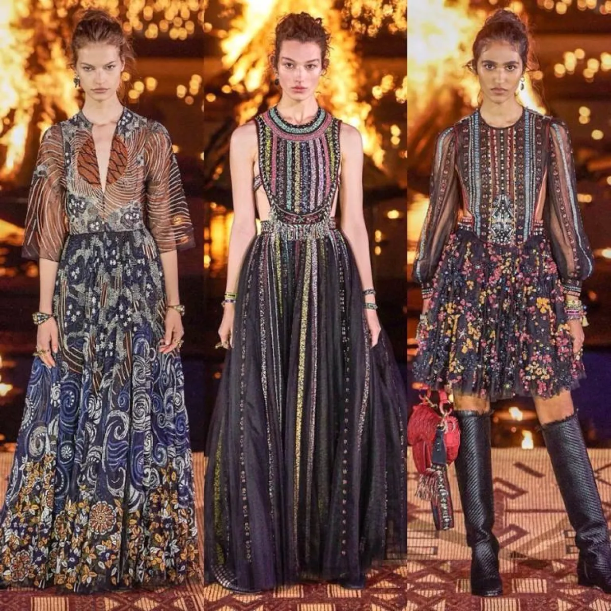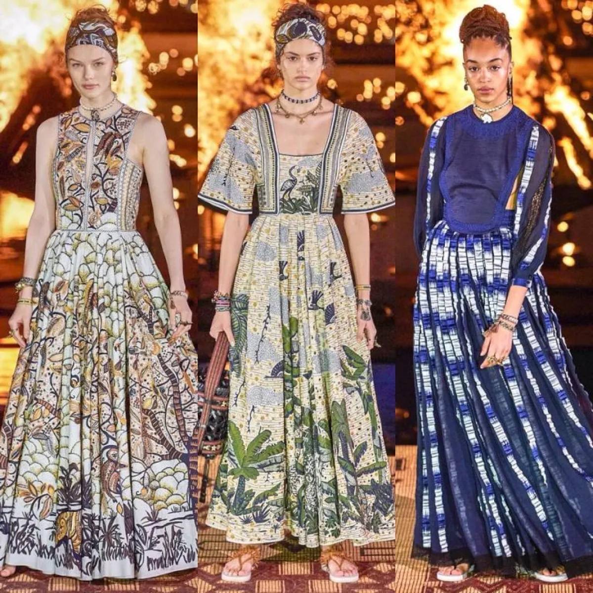 تميزت تشكيلة ديور Dior بالأزياء المطبعة برسوم مستوحاة من الطبيعة، كما اعتمدت الدار الراقية على تداخل النقوش ووضوحها، ليشعر الرائي أنه أمام لوحة لفنان تشكيلي مخضرم.