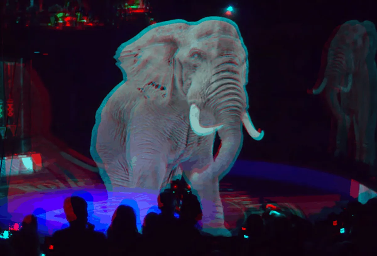 إلا أن سيرك رونكالي الألماني قرر التخلي عن استخدام الحيوانات المدربة في تنفيذ العروض، ذلك التقليد الذي لم يتوقف عن انتقاده المدافعون عن حقوق الحيوان، باستبداله بتقنية جديدة، هي تقنية الهولوجرام ثلاثية الأبعاد، إذ يستخدم هذا السيرك الألماني حالياً هذه التقنية التي بدأ بها العام الماضي بعد إلغاء عروض الحيوانات التقليدية في أواخر العام 2017، لعرض حيوانات مجسمة عملاقة، تمنح مشاهدتها المتعة نفسها التي يعيشها الجمهور في العروض التقليدية، فيرى الجمهور خيولًا تدور حول حلقة السيرك، وعندما تختفي تحل سمكة عملاقة محلها، وبعد ذلك يظهر فيل يقترب من الجمهور ويؤدي مشهدًا معتادًا وهو الوقوف على قدميه الأماميتين.