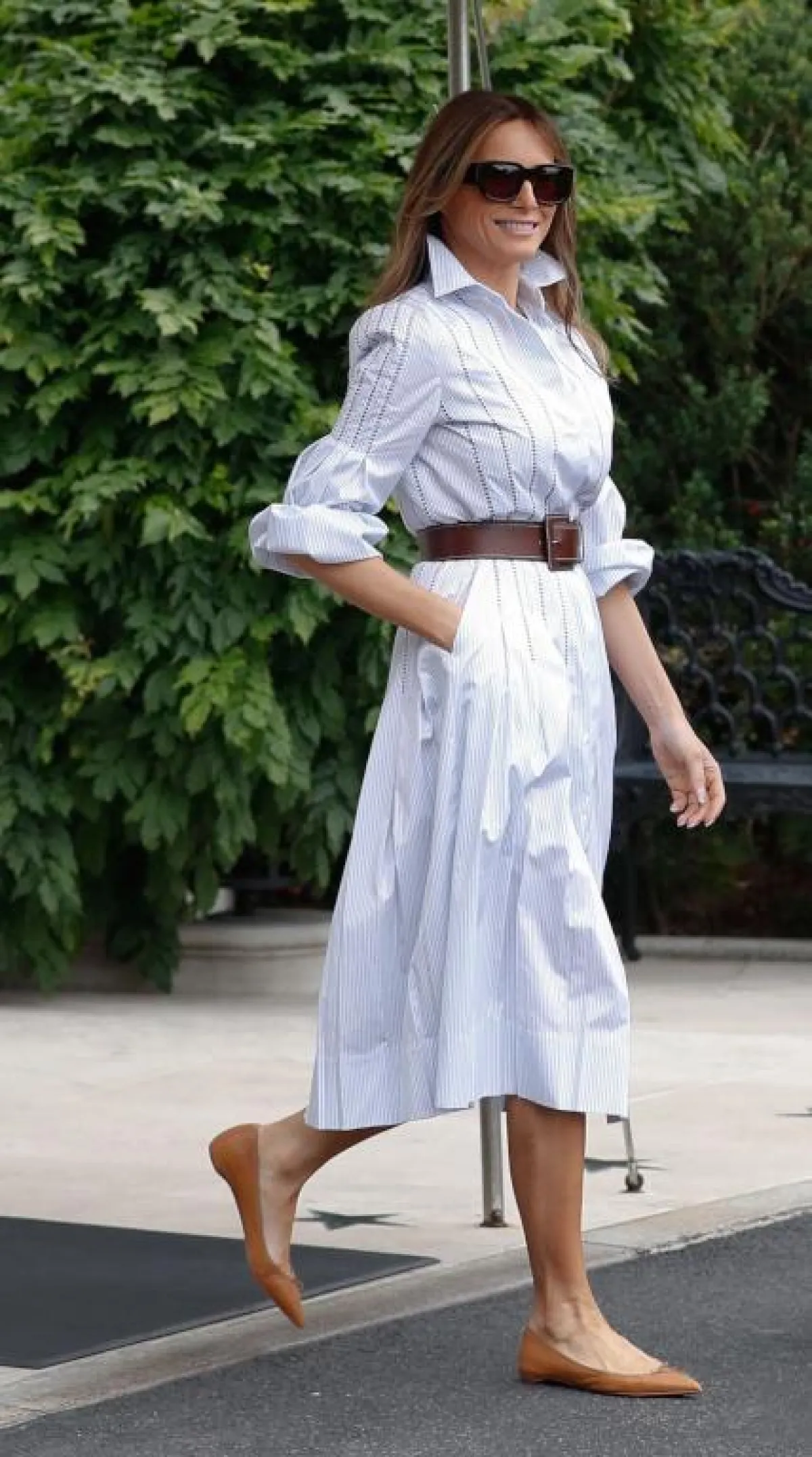 بالإضافة إلى حرص ميلانيا ترامب على اختيار أزياء لها دلالة، يبدو أنها تبحث أيضًا عن قطع وظيفية، مثل الفستان القميص الذي لا تتخلى عنه في جميع سفراتها تقريبًا.
