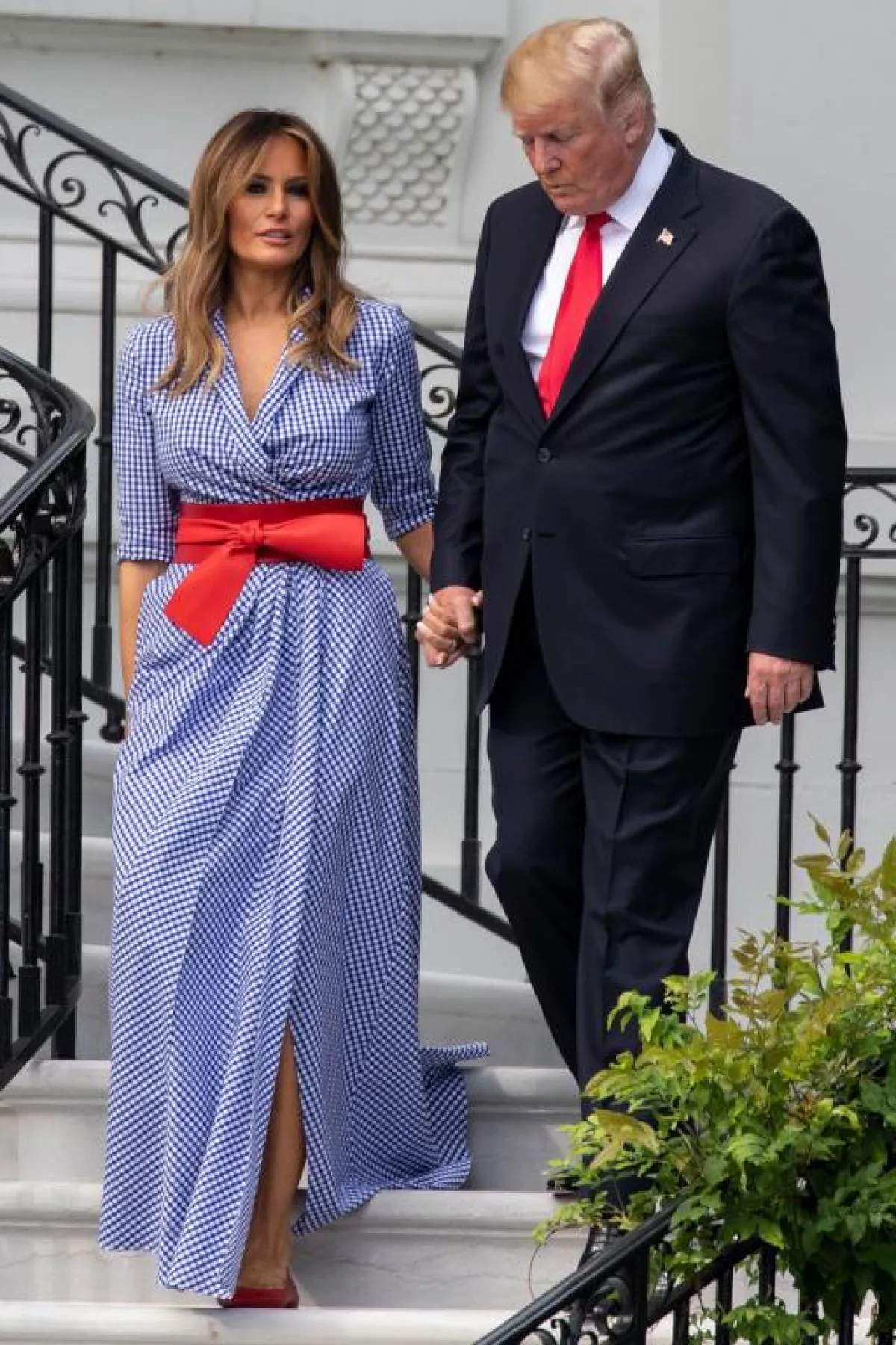 اعتمدت ميلانيا ترامب هذه الصيحة بأساليب متعددة، حيث ظهرت من قبل بفستان أزرق مزين بالمربعات الكاروهات الدقيقة، بتوقيع دار أزياء ألكسندر ماكوين Alexander McQueen وضمته بحزام أحمر. تمتع هذا الفستان خصّيصًا بشق أمامي امتد من فتحة الصدر v إلى نهاية التصميم.