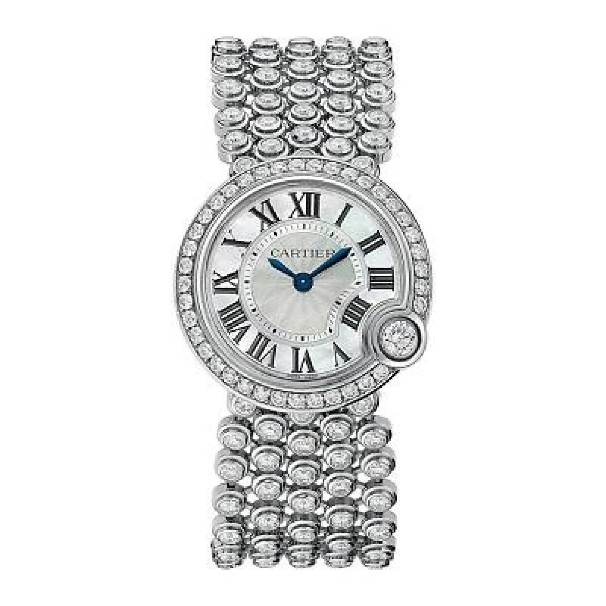 من دار كارتييه Cartier اخترنا ساعة Ballon de Cartier ذات التصميم المميز، الذي يعود بنا إلى القرن الماضي؛ ليذكرنا بجمالها ورونقها من خلال السوار العريض المرصّع بالألماس مع قالب مطليّ باللؤلؤ الأبيض.