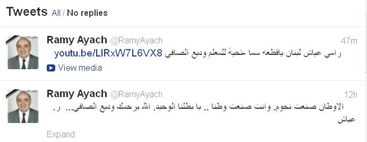 أما شيرين فكتبت على "تويتر": "البقاء لله وديع الصافي".