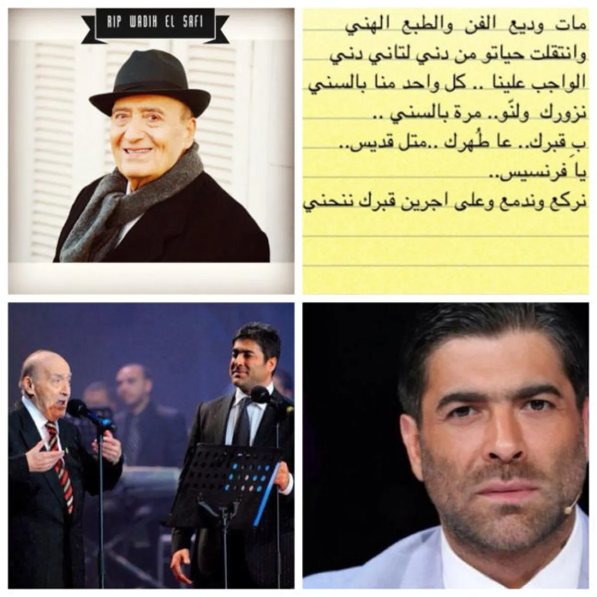 أثارت وفاة عملاق الطرب وديع الصافي حزناً وألماً كبيرين في نفوس الشعب اللبناني والعربي جميعاً، فنعى معظم الفنانين الصافي، كلٌّ على طريقته، عبر حساباتهم الشخصيّة على مواقع التواصل الاجتماعي كـ "تويتر" و"فيس بوك" و"أنستغرام"؛ فمنهم من قام بتحميل صورته مع الصافي، ومنهم من قام بنشر مقاطع من اليوتيوب بصوته لأغنيةٍ، كان قد أداها للصافي، فيما لم يكلّف البعض نفسه ليغرّد ـ على الأقل ـ تغريدة حزنٍ على وفاة الصافي.