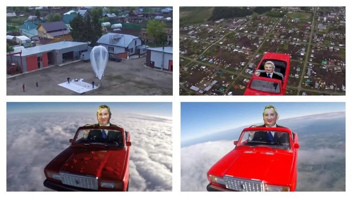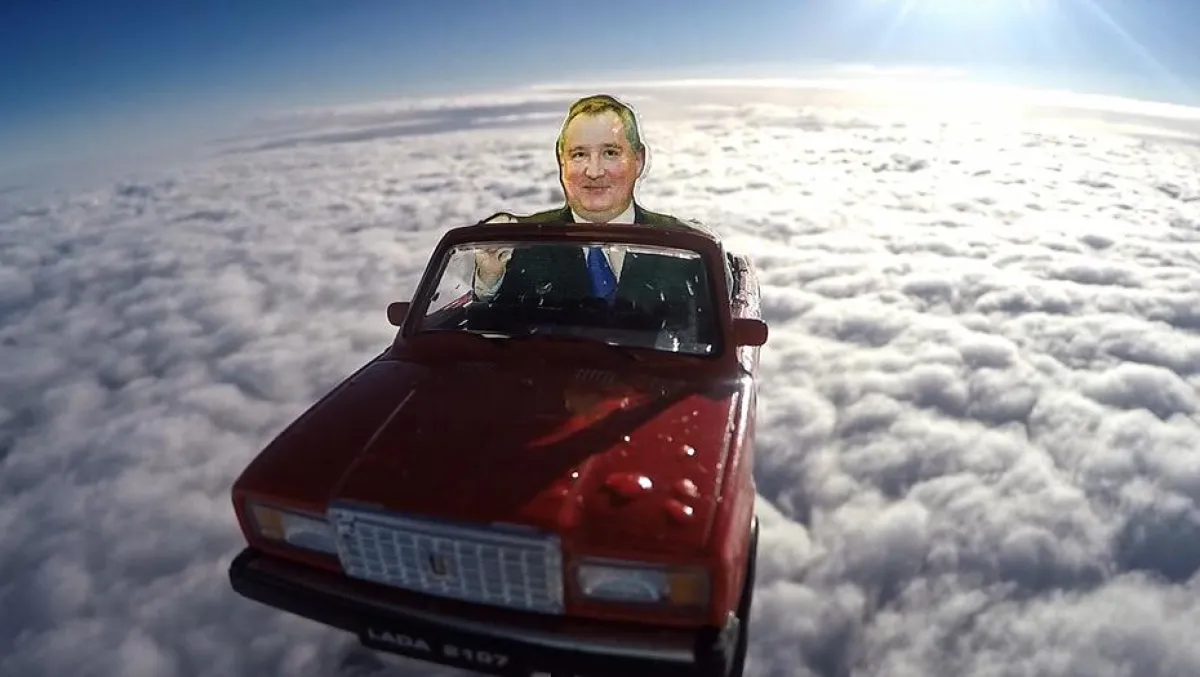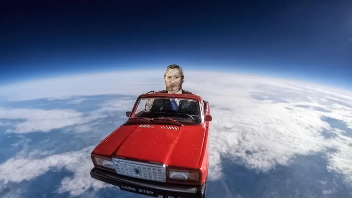 وتابعت الصحيفة الروسية، أن العلماء الروس –خفيفي الظلّ- لم يكتفوا بإرسال السيارة اللعبة إلى الفضاء فقط، بل كانوا قد وضعوا صورة لـ«ديمتري روجوزين» وهو مبتسم في المقعد الأمامي، كنوع من المحاكاة لفكرة دمية «ستار مان» التي فعلتها الشركة الأمريكية. وحمل السيارة اللعبة والصورة إلى الفضاء، منطاد طار حتى ارتفاع بلغ 150 كيلومتراً فوق سطح الأرض. وعادت السيارة فيما بعد عقب انتهاء الرحلة الفضائية الساخرة التي استمرت 16 ساعة كاملة إلى الأرض مجدداً، وهبطت على بعد 2000 كيلومتر من موقع الإطلاق.