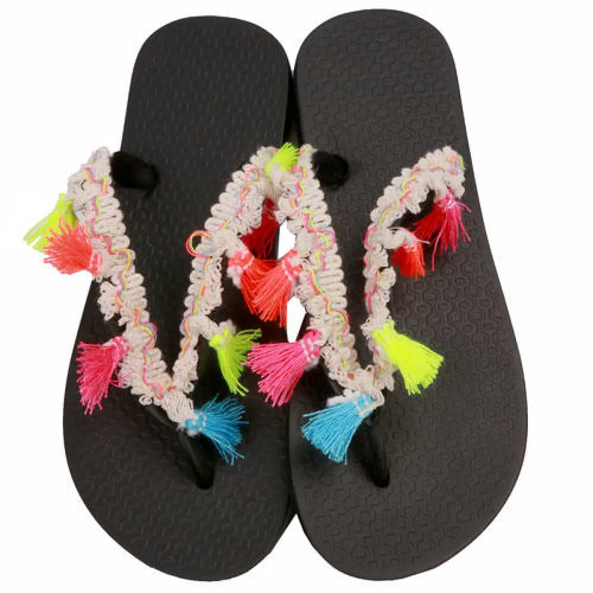 تعتبر أجواء الصيف الحارّة ورحلات الشاطئ مثالية لارتداء أحذية الفليب فلوب المفتوحة، المزينة بالجواهر والخرز، والتي تضفي لمسة عصرية على الإطلالة، إضافة إلى كونها تعطي شعوراً بالراحة وتجمع بين الأناقة والبساطة.