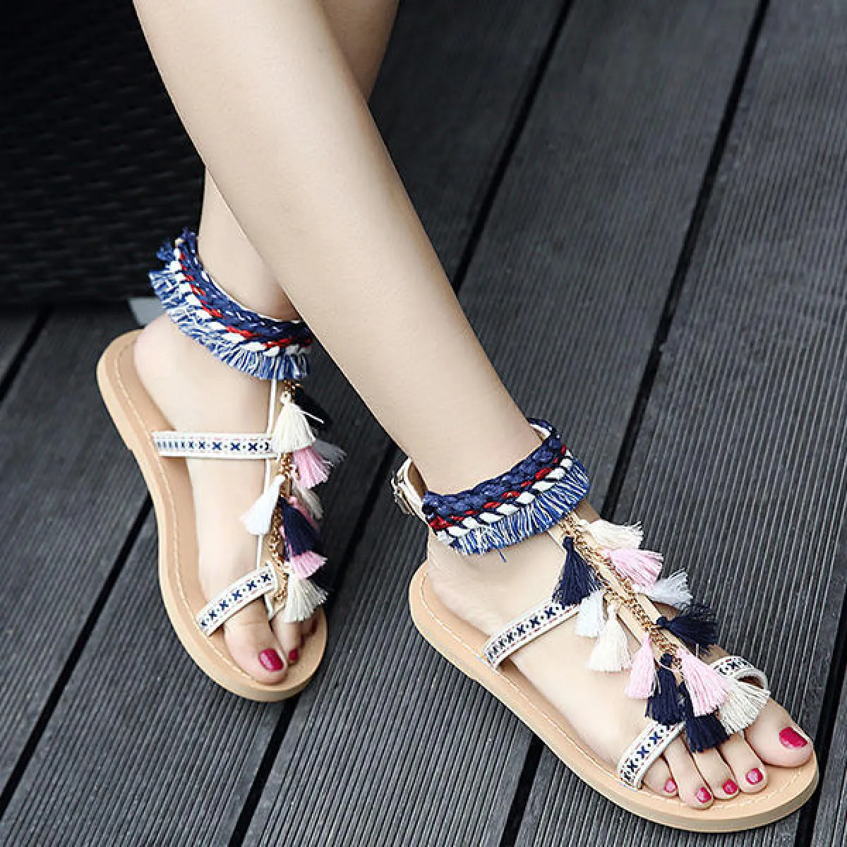 وهو يضفي رونقاً خاصاً على القدم؛ حيث يبدو وكأنه حذاء مع خلخال في الوقت عينه، وتعدد الألوان فيه يعطيه روحاً عصرية بنكهة صيفية.