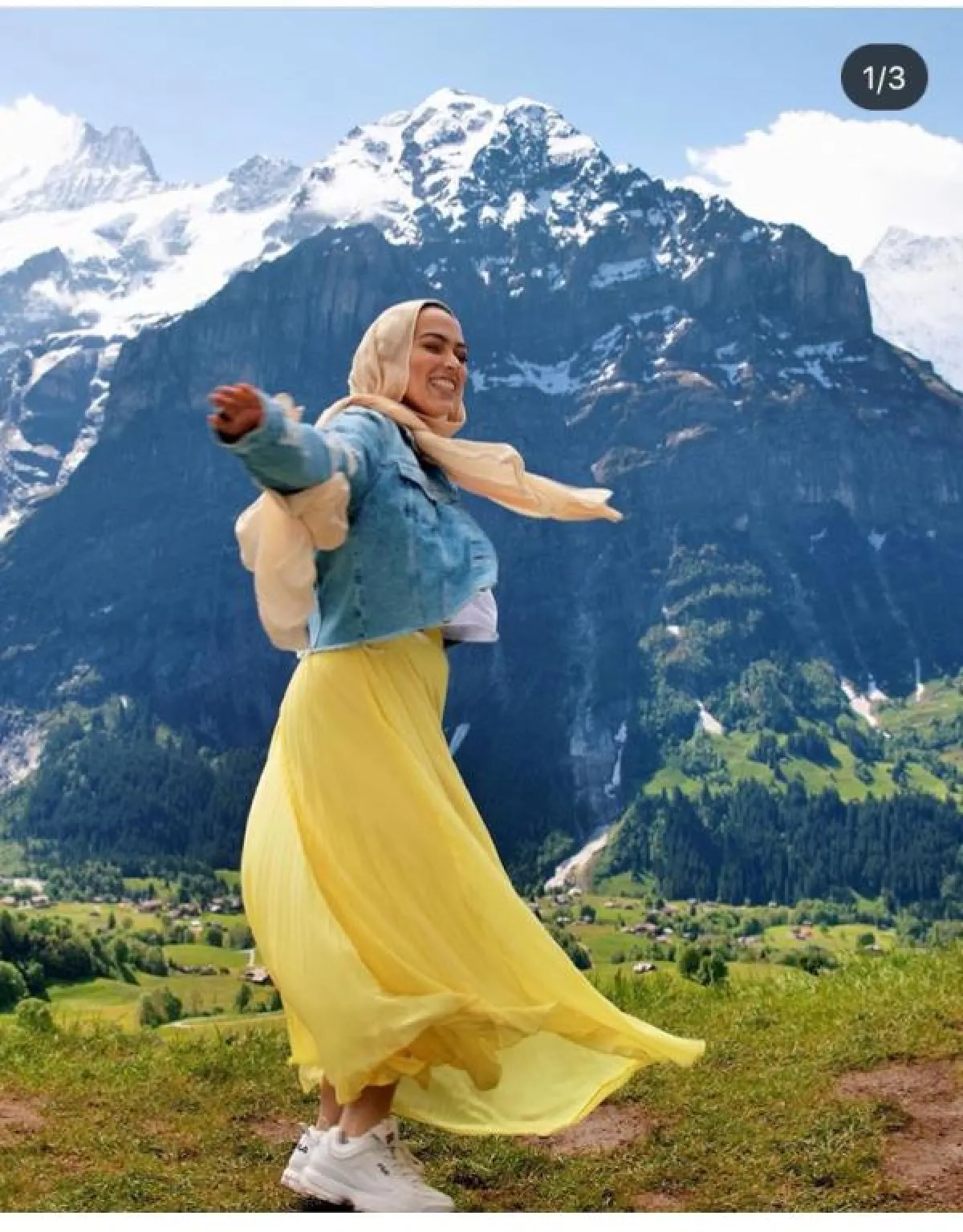 إذا كانت وجهتكِ إحدى المدن الساحلية، اعتمدي التنانير الصيفية الملونة، كهذه التنورة باللون الأصفر من سارة صبري، مع الجاكيت الجينز القصير، والتوب الأبيض، واعتمدي دائمًا معها طرح طويلة أو توربان، مع الاكسسوارات الملونة لتزيدي حيوية وشبابية.