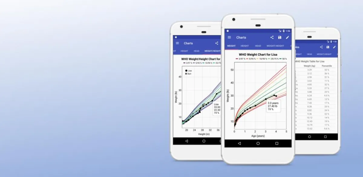 يسجل هذا التطبيق قياسات الوزن والطول ومحيط الرأس للأطفال، ليقوم باستخدامها في إنشاء مخططات تحوي نسباً مئوية، حول نمو الطفل منذ الولادة وحتى سن 20 عاماً.