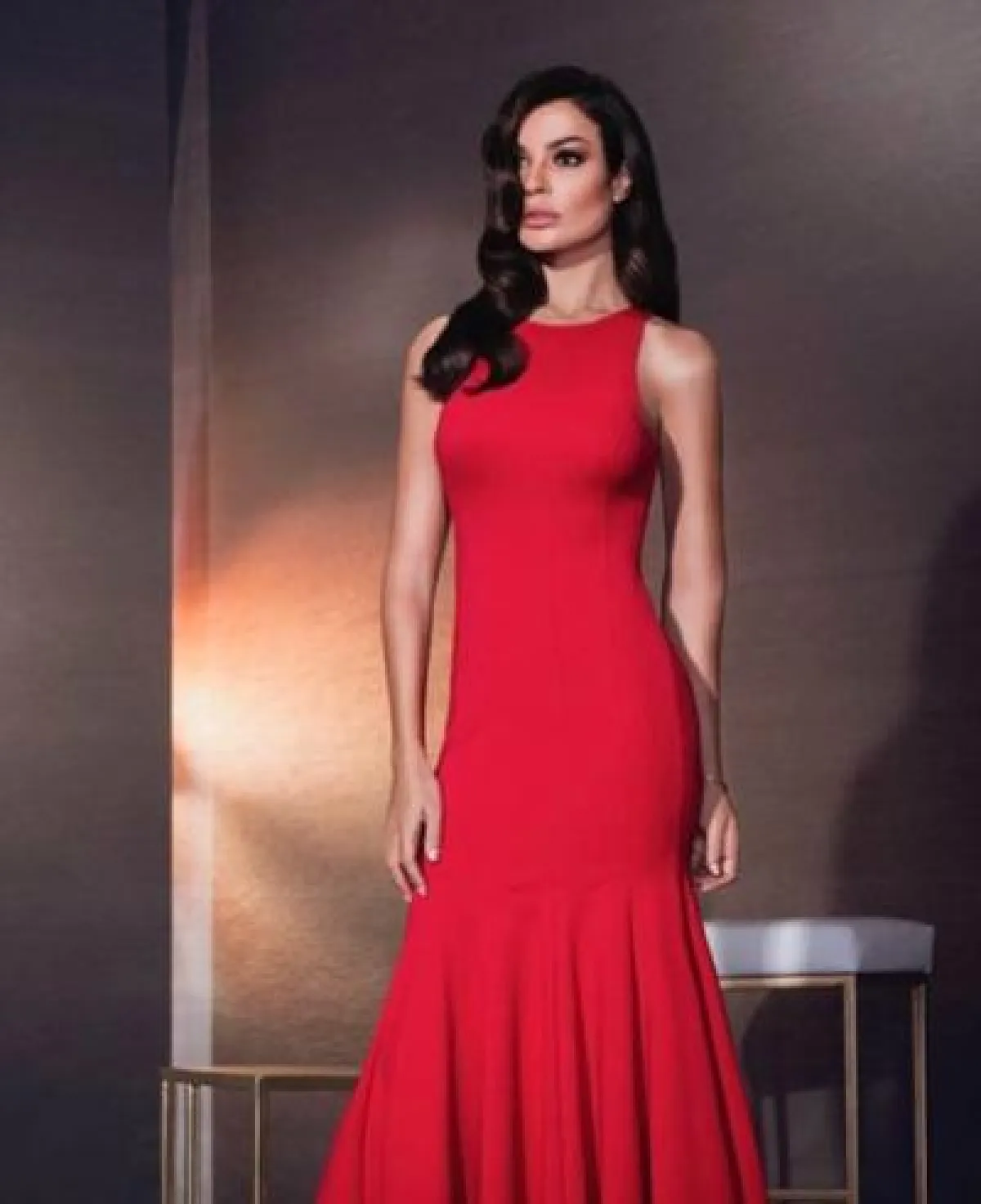 لارا اسكندر في فستان سهرة أحمر: