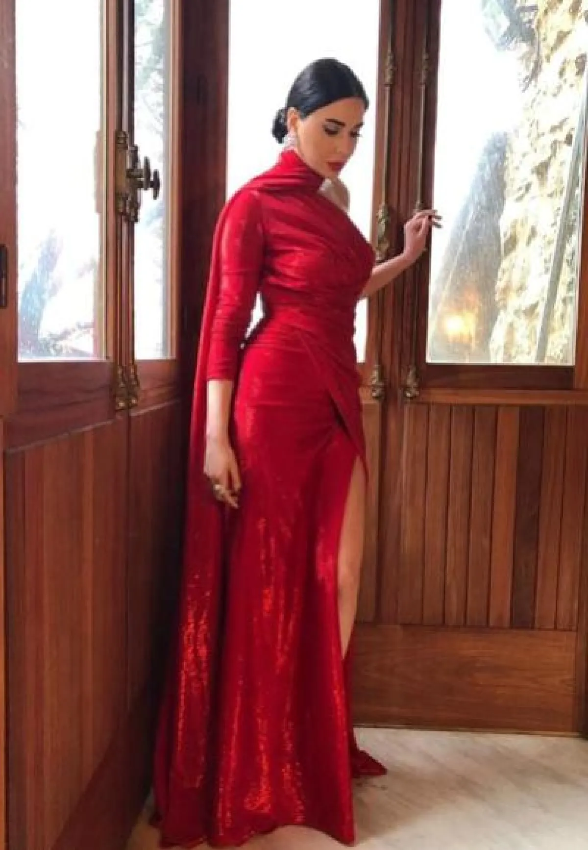 سيرين عبد النور متألقة في فستان باللون الأحمر: