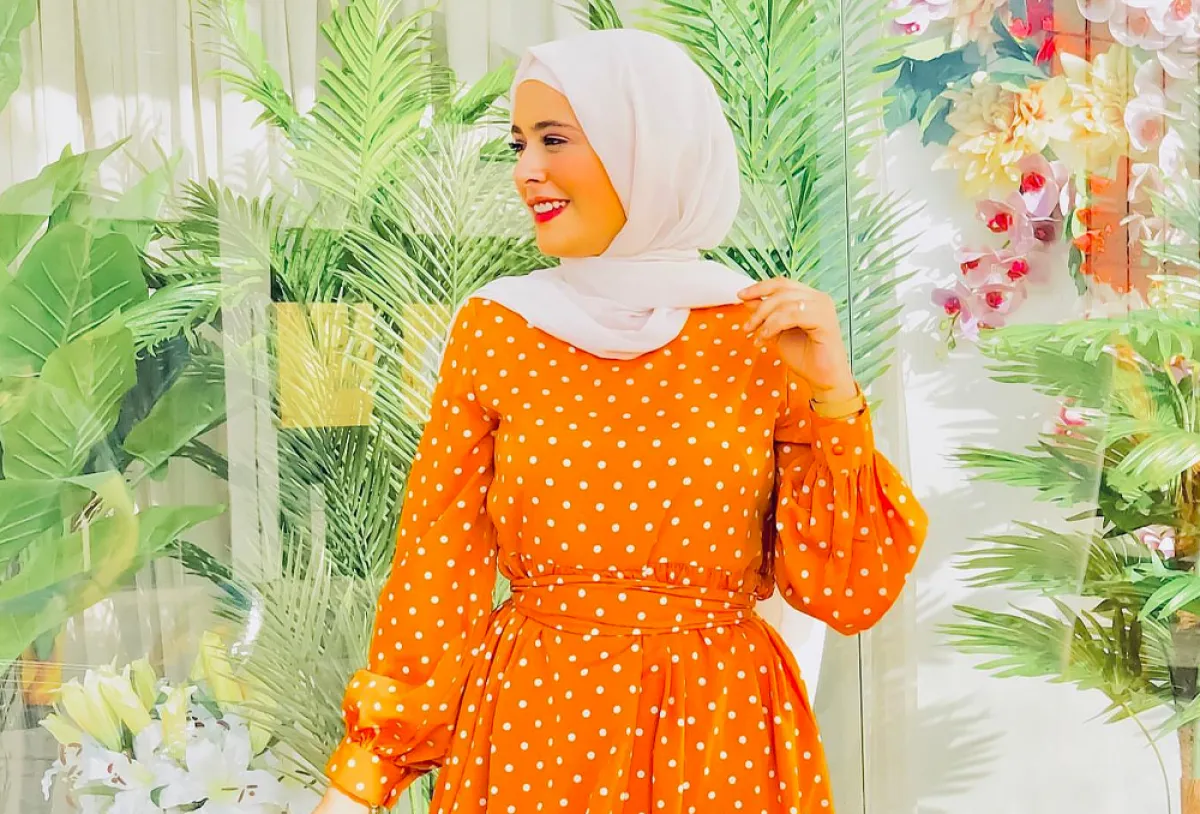 الفستان المنقط الخردلي لإطلالة غاية في الأنوثة