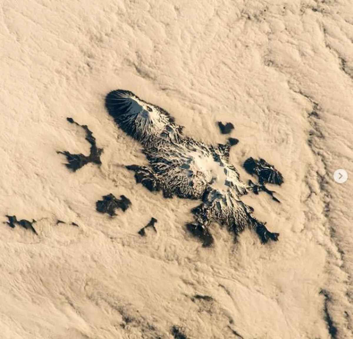 ولأن الصور التقطت من الفضاء الخارجي، فقد تمكنت من إظهار تفاصيل فريدة غير معتادة بالنسبة لنا نحن الذين نعيش بين هذه التفاصيل. فكانت قمم الجبال التي تغطيها الثلوج، عبارة عن لوحة بيضاء مموجة بحرفية عالية مدهشة. حتى إن جبل «تاراناكي» الشهير الواقع في نيوزيلندا، بدا كأنه محاط بغيوم من «الصوف والقطن»، تودّ لو تستطيع لمسها وتحسسها.
