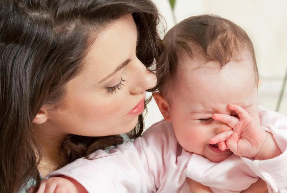 كما تبكي دون سبب وذلك لأن طفلها يبكي.
