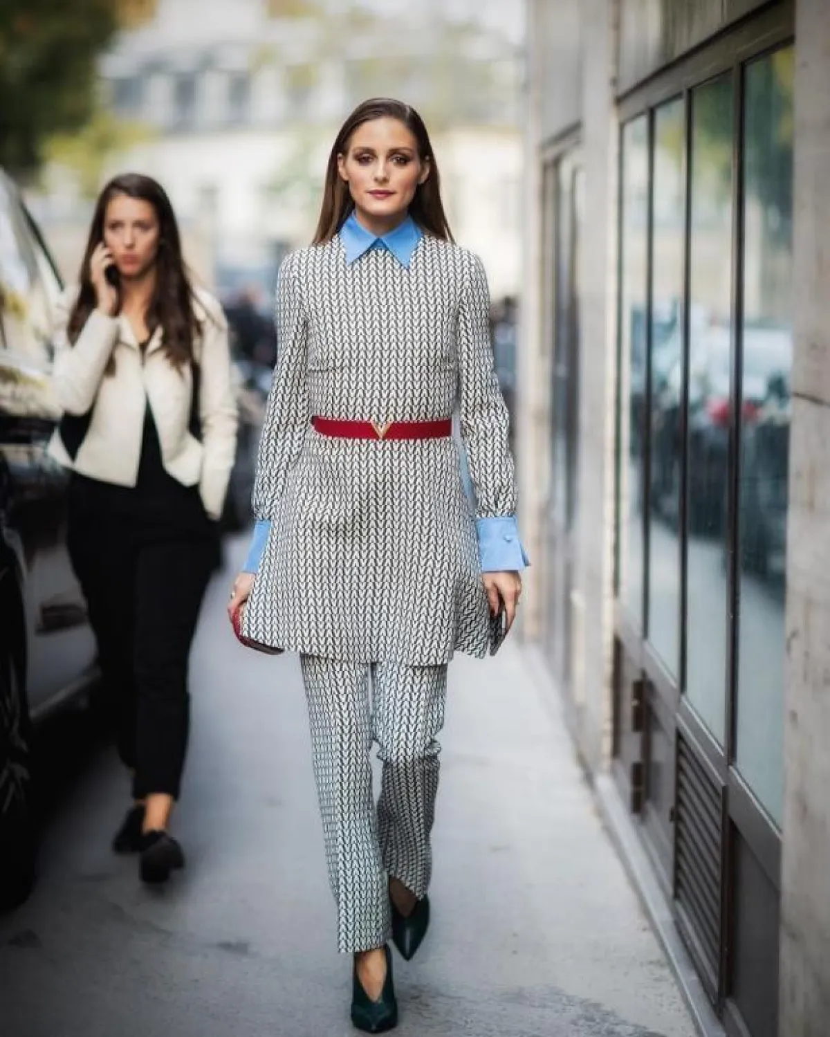 من إطلالات «أوليفيا باليرمو» الأخيرة؛ إطلالة بأزياء داكنة اللون، فنسّقت بنطلوناً أسودَ من صيحة الجلد مع بليزر أسود وقميص أبيض. اعتمدت الحذاء الرياضي مع هذه الإطلالة؛ لكسر المظهر الرسمي، وحقيبة اليد بشكل صندوق.