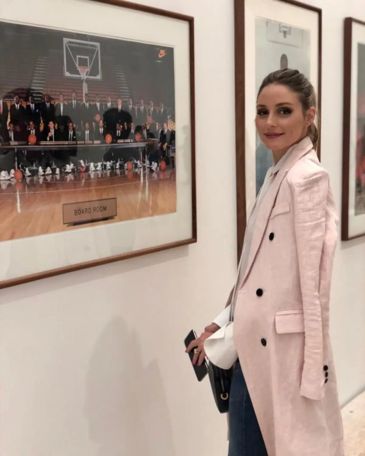 خلال توجهها لمعرض صور، اختارت أوليفيا إطلالة رسميّة مؤلّفة من البليزر الطويل من اللون الزهري، نسّقته مع جينز وقميص نسائي من اللون الأبيض. أضفت لمستها الخاصة لهذه الإطلالة؛ باعتماد حقيبة صغيرة من اللون الأسود.