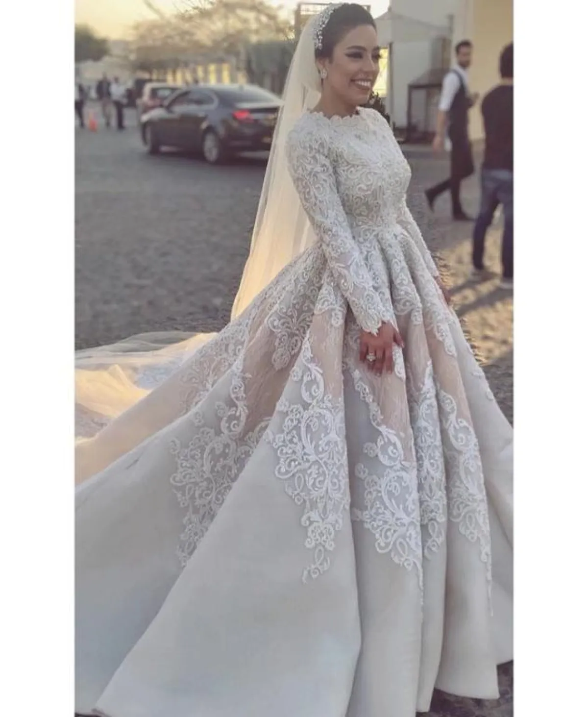 الفستان المنفوش بتصميم السندريلا مع الأكمام المطرزة