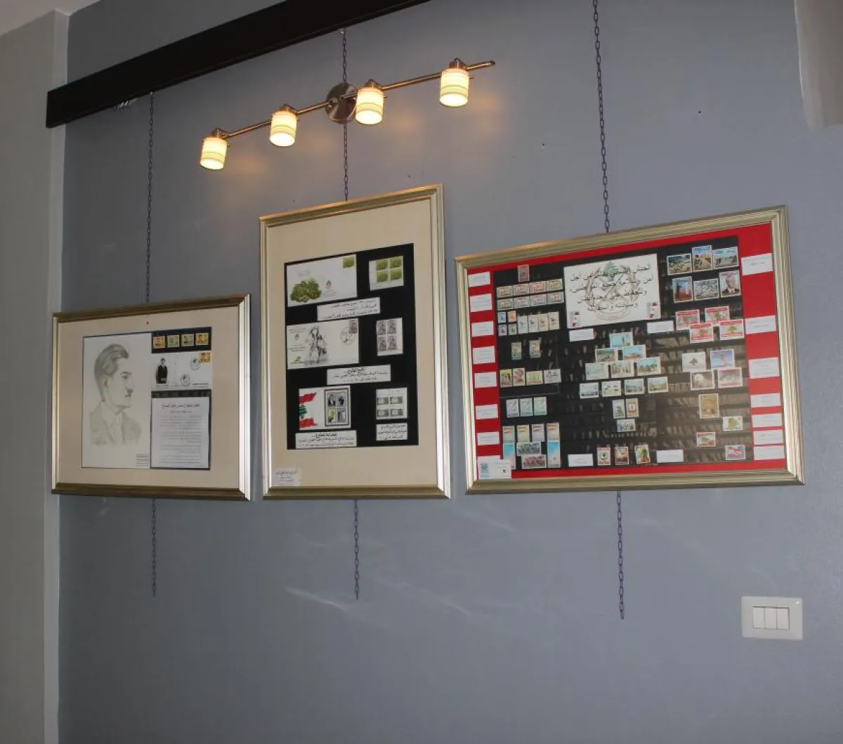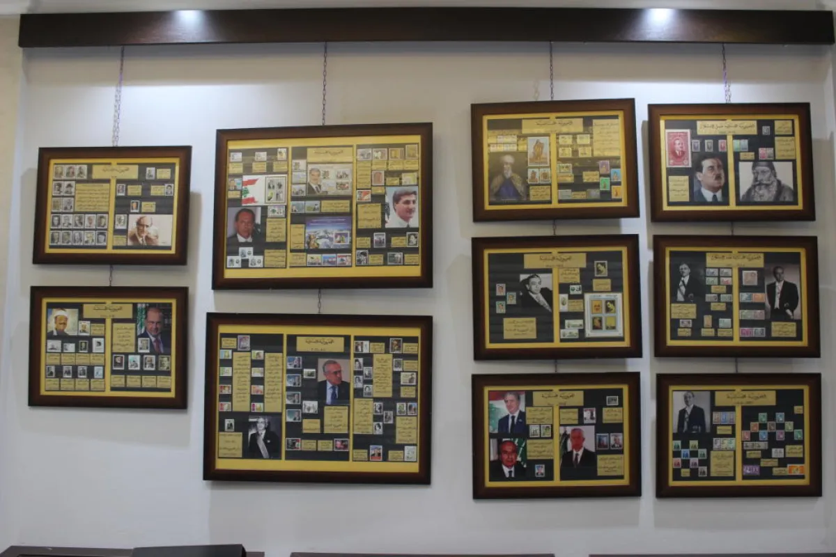 مجموعة كبيرة من الطوابع والبطاقات البريدية، عشرات اللوحات المعروضة على الجدران والتي تضمّ مجموعات من الطوابع اللبنانية المرتّبة حسب التسلسل الزمني للإصدارات، لوحات موجزة وصور داعمة وبطاقات بريدية... خزائن تحوي أكثر من 1500 ألبوم للطوابع من لبنان ومن مختلف دول العالم.