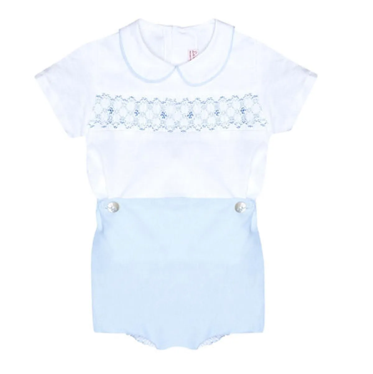 ويتكون الزي الذي ظهر به "الأمير لويس" من قميص أبيض من القطن النقي المطرز يدوياً بالأزرق مع سروال أزرق فاتح يرتبطان معاً بزرين ناعمين، وهي قطعة ثياب كلاسيكية بامتياز ومن النوع الذي لا تبطل موضته، وهي من تصميم شركة الأزياء الإسبانية La Coqueta التي تديرها المصممة "سيليا مونوز" والتي أعربت عن فرحتها لاختيار زي الأمير من هذه الشركة الصغيرة التي صارت الآن محط اهتمام الناس في كل أنحاء العالم كما تقول حيث لا تتوقف طلبات الشراء من دول بعيدة مثل جنوب أفريقيا وأستراليا وكوريا الجنوبية خاصة وأن سعر هذا الزي معقول ولا يتجاوز 72 جنيه إسترليني.