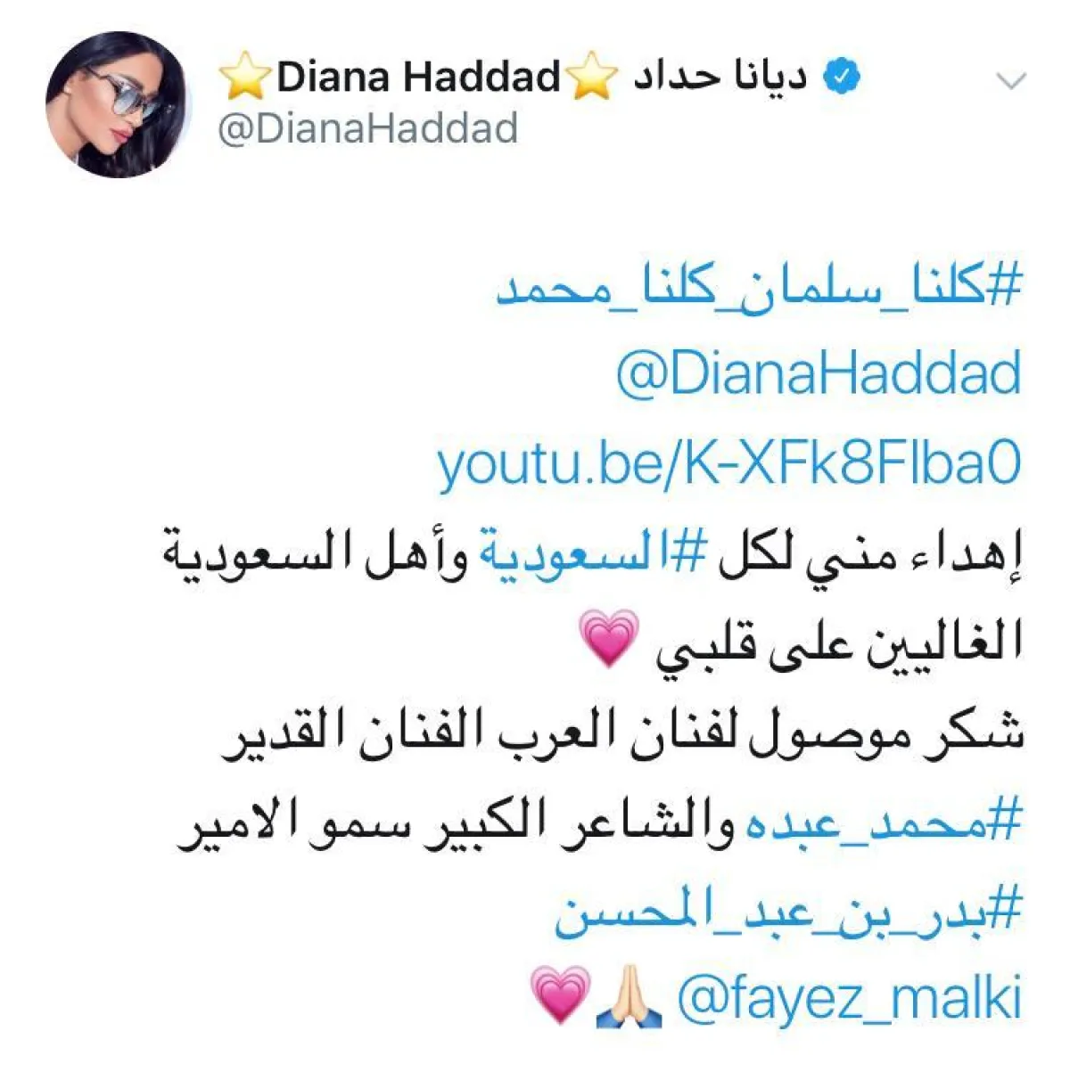 وبتسجيل وتوزيع جديدَيْن أعادت ديانا حداد بصوتها الأغنية الوطنية الأشهر حيث أخذت الأغنية منحنى مختلفًا، وأصبحت تتردد في المناسبات الوطنية والإنجازات السعودية، وعلقت ديانا على حسابها الرسمي في مدونة "تويتر" كاتبة: "كلنا سلمان وكلنا محمد" إهداء مني لكل السعودية وأهل السعودية الغاليين على قلبي، شكر موصول لفنان العرب الفنان القدير محمد عبده والشاعر الكبير بدر بن عبد المحسن".