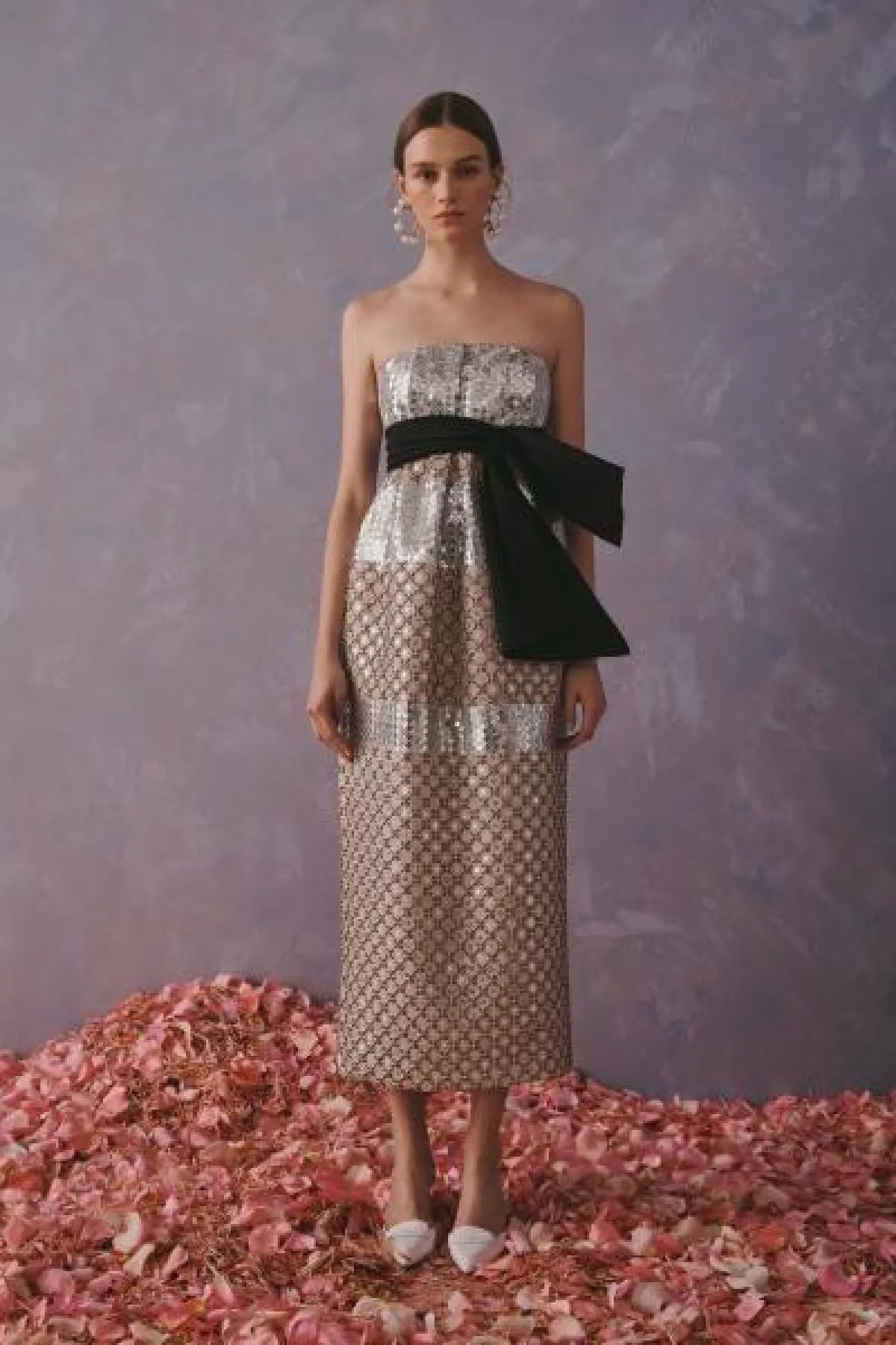 - ظهرت عارضات لماركات شهيرة مثل تاداشي شوجي Tadashi Shoji ودينيس باسو Dennis Basso بفساتين سهرة محددة الخصر، وبعضها مزين بثنيات ناعمة، اعتمدي هذا الستايل ليساعدكِ في إخفاء بروز البطن.