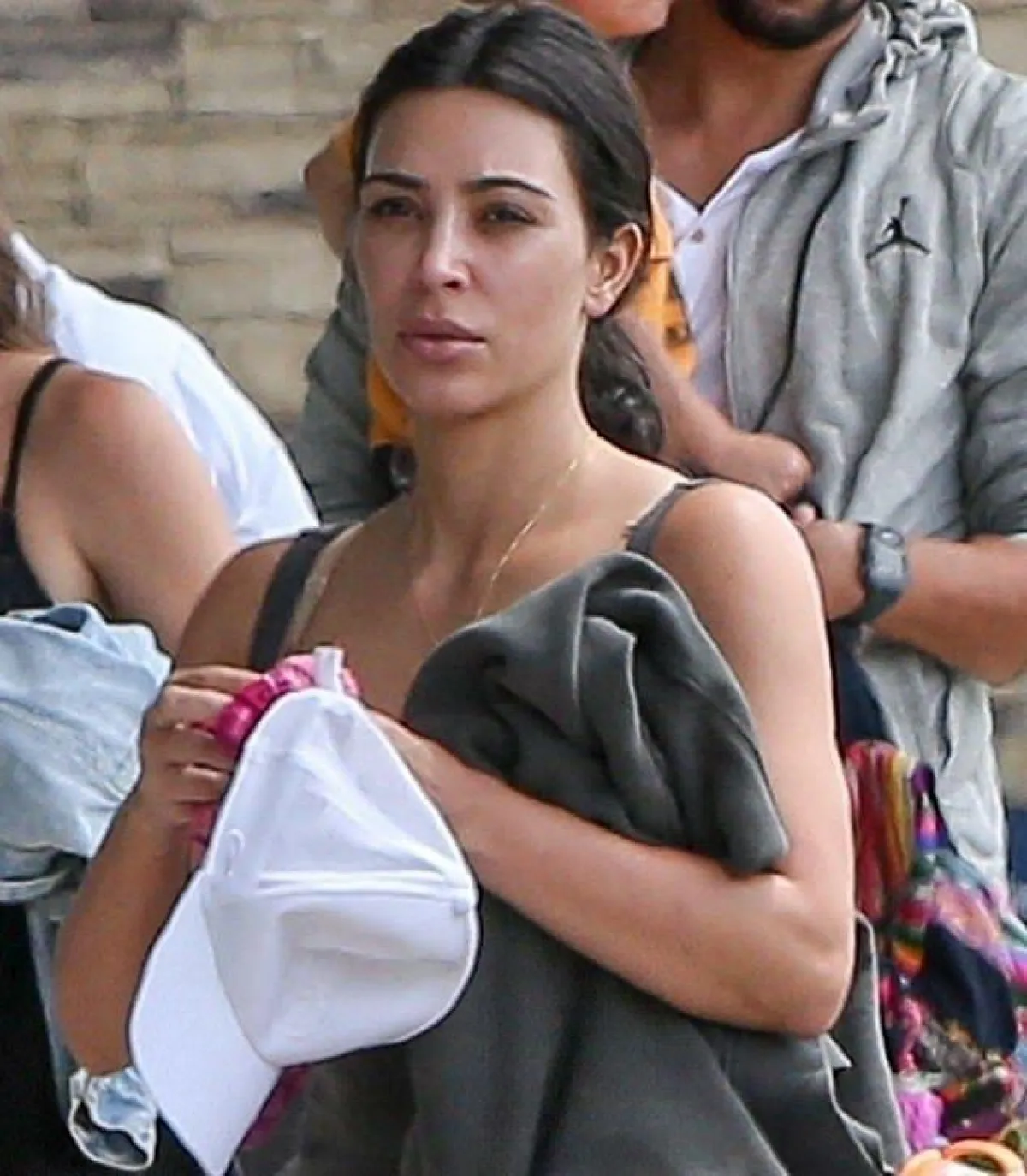 وعلى الرغم من أننا تعودنا أن تكون اطلالاتها دائمًا مثالية وببشرة نضرة، إلا أنها بدت في الصور بعيدةً كل البعد عن النضارة وباهتة جدًّا، والهالات السوداء ظاهرة حول عينيها.