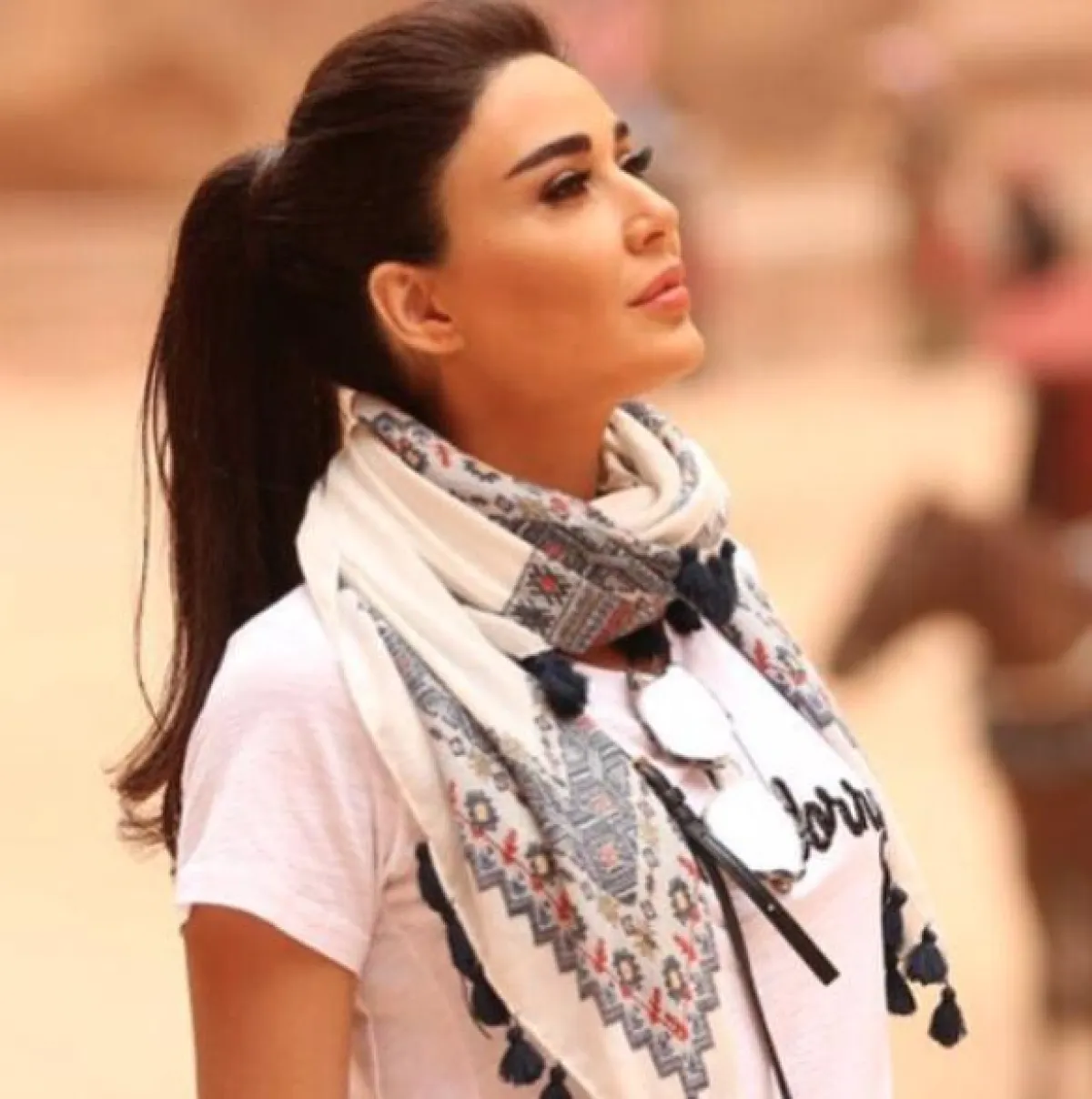نسرين طافش اختارت السكارف اكسسوار للرأس: