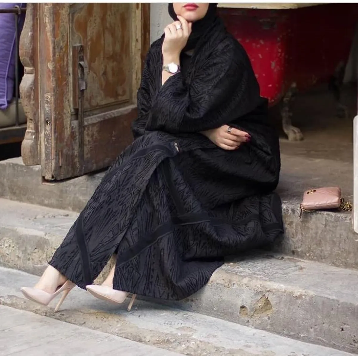 عادة لا تحتاج عبايات الجاكار المفتوحة إلى الكثير من التفكير في كيفية تنسيق ماذا سترتدين تحت العباية، لأنّ أغلب التصميمات تكون مبطبعة بالرسومات، كهذه العباية من deeva olshop ديفا أولشوب، كل ما سوف تحتاجين إليه للوك حيادي وهادىء في اختيار الألوان، حتى تبدي في كامل أناقتكِ، من دون الكثير من التكلف.
