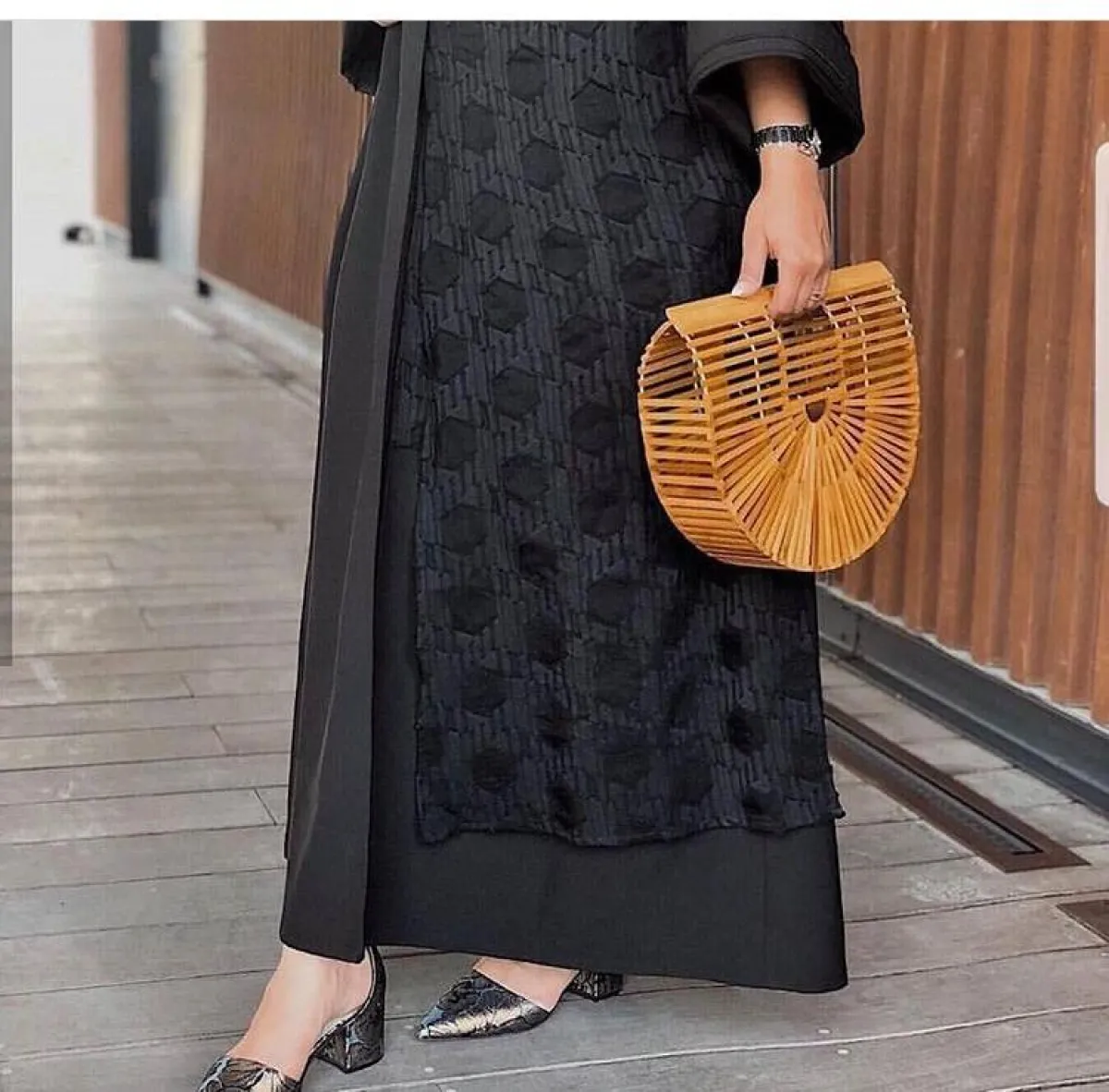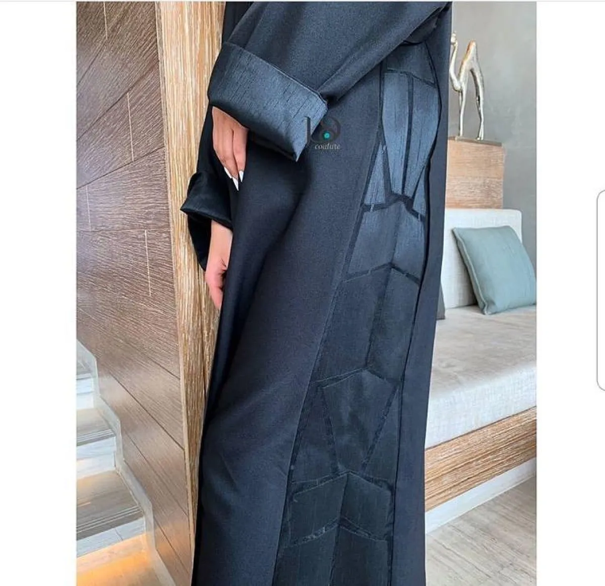 من الممكن أن تختاري عبايات الجاكار مع اللمسة الكلاسيكية أو السيمي كلاسيك، كعباية أساسية بخزانتكِ للمناسبات المهمّة المفاجئة، أو التي تحتارين فيها ماذا يمكنكِ أن ترتدي، كهذا الموديل من Qabaya كابايا، نسقيها مع كعب عالٍ بألوان النود، أو الأحمر، وشنطة صغيرة باللون الأسود، أو بلون الحذاء نفسه، واختاري لفات حجاب من الساتان المخمل الأسود لتحافظي على الحيادية.